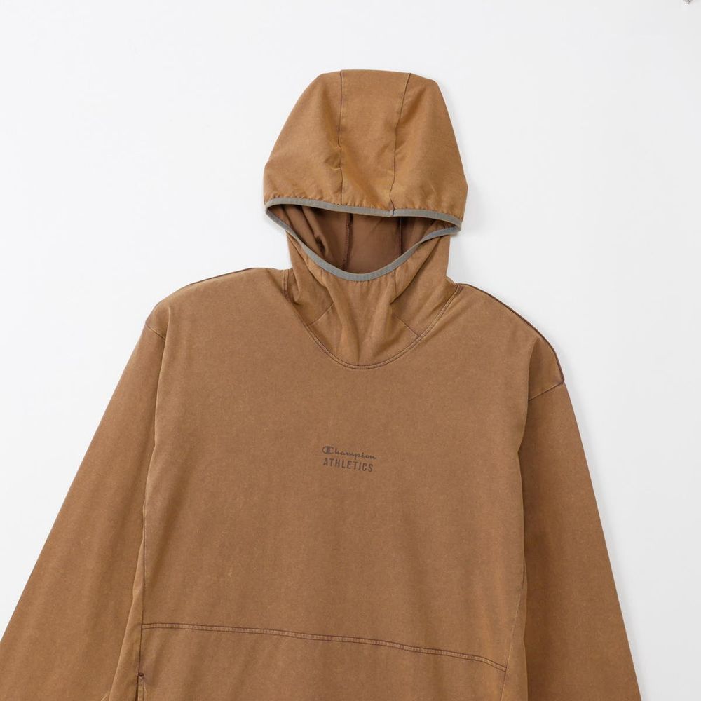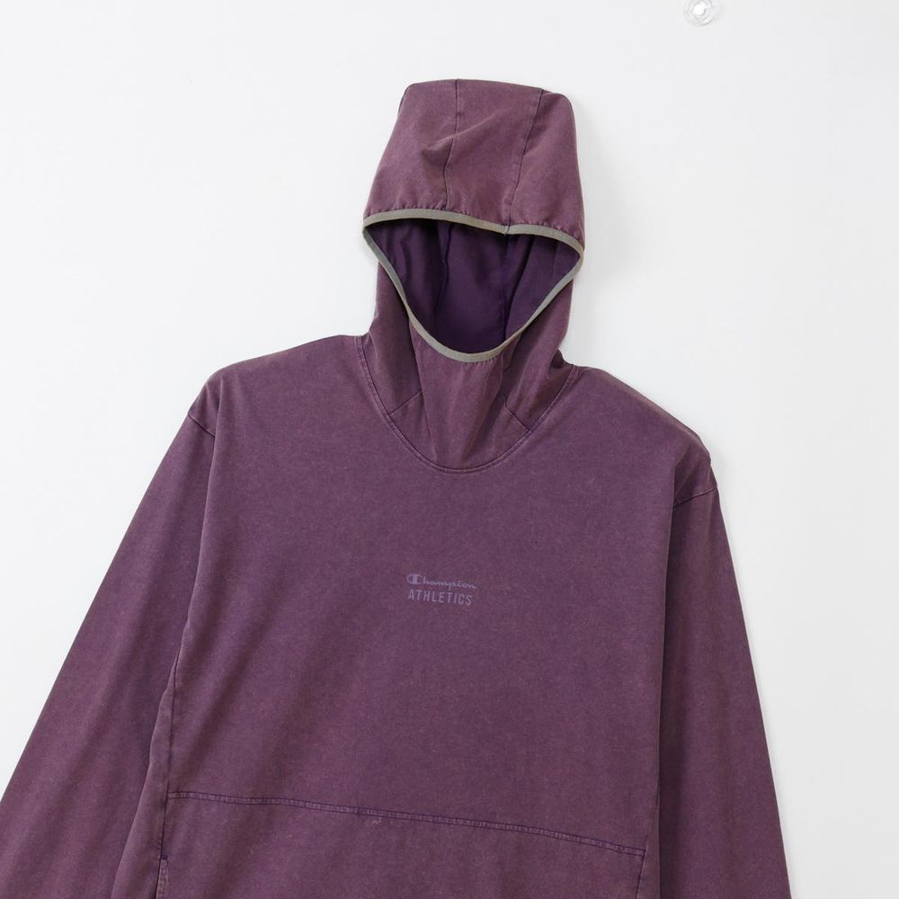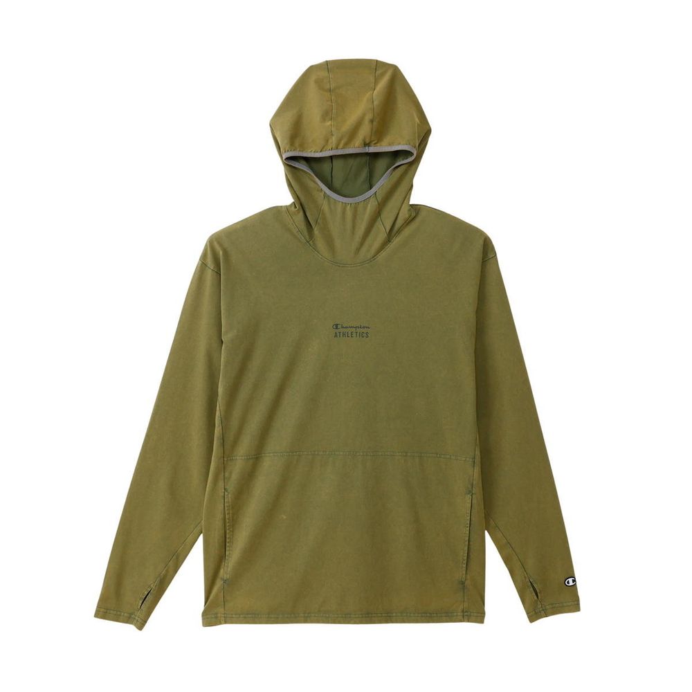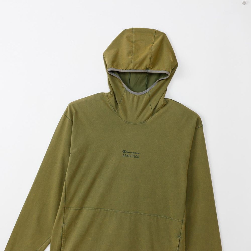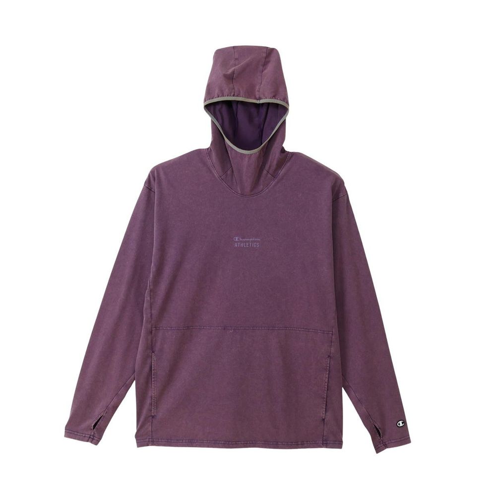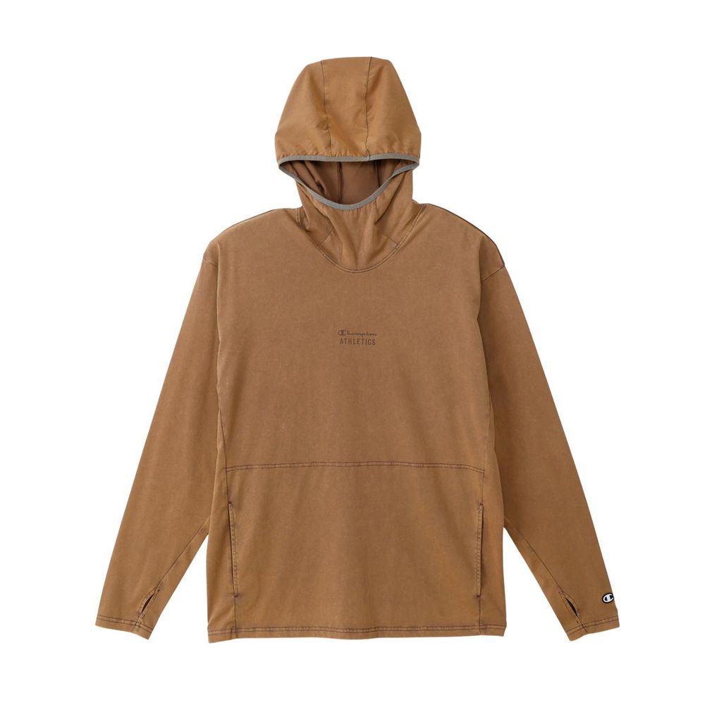 ●特殊なウォッシュ加工によるフェード感が魅力の、優れた通気性とUVカット機能を併せ持ったフーデッドシャツです。裏面には、速乾性、遮熱機能、接触冷感機能を備えたポリエステルを使用しているので汗をかいても快適な着心地です。身幅、肩幅にゆとりを持たせたリラックスフィットで、両サイドの縫製部に沿ってポケットを付け、袖口には日差しが気になる季節の日焼け対策や肌寒い季節の防寒対策にサムホールを付けています。胸にChampion(R)(チャンピオン)ロゴと「ATHLETICS(アスレチックス)」を組み合わせてラバープリントで入れています。●FEATURES:・ USA Grown Cotton ・ Recycled Polyester ・ Rubber Print