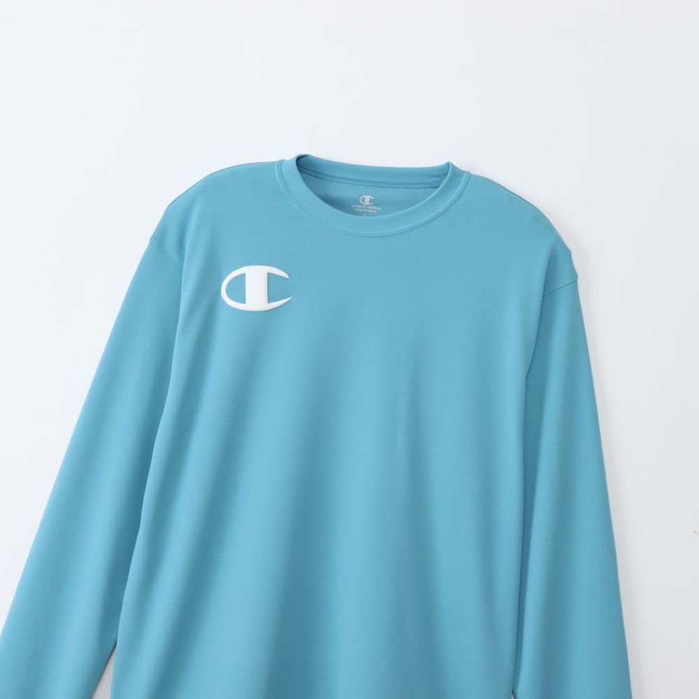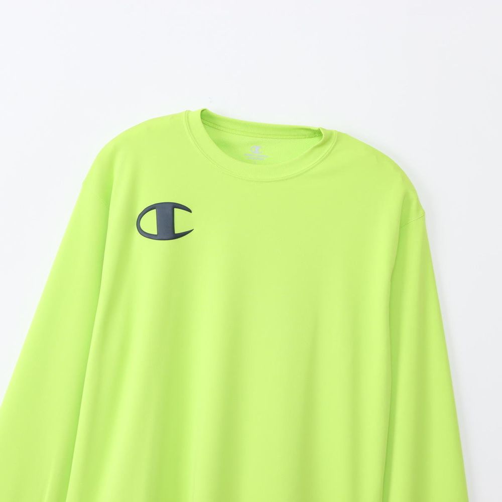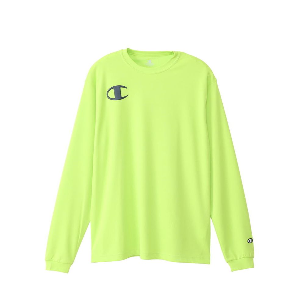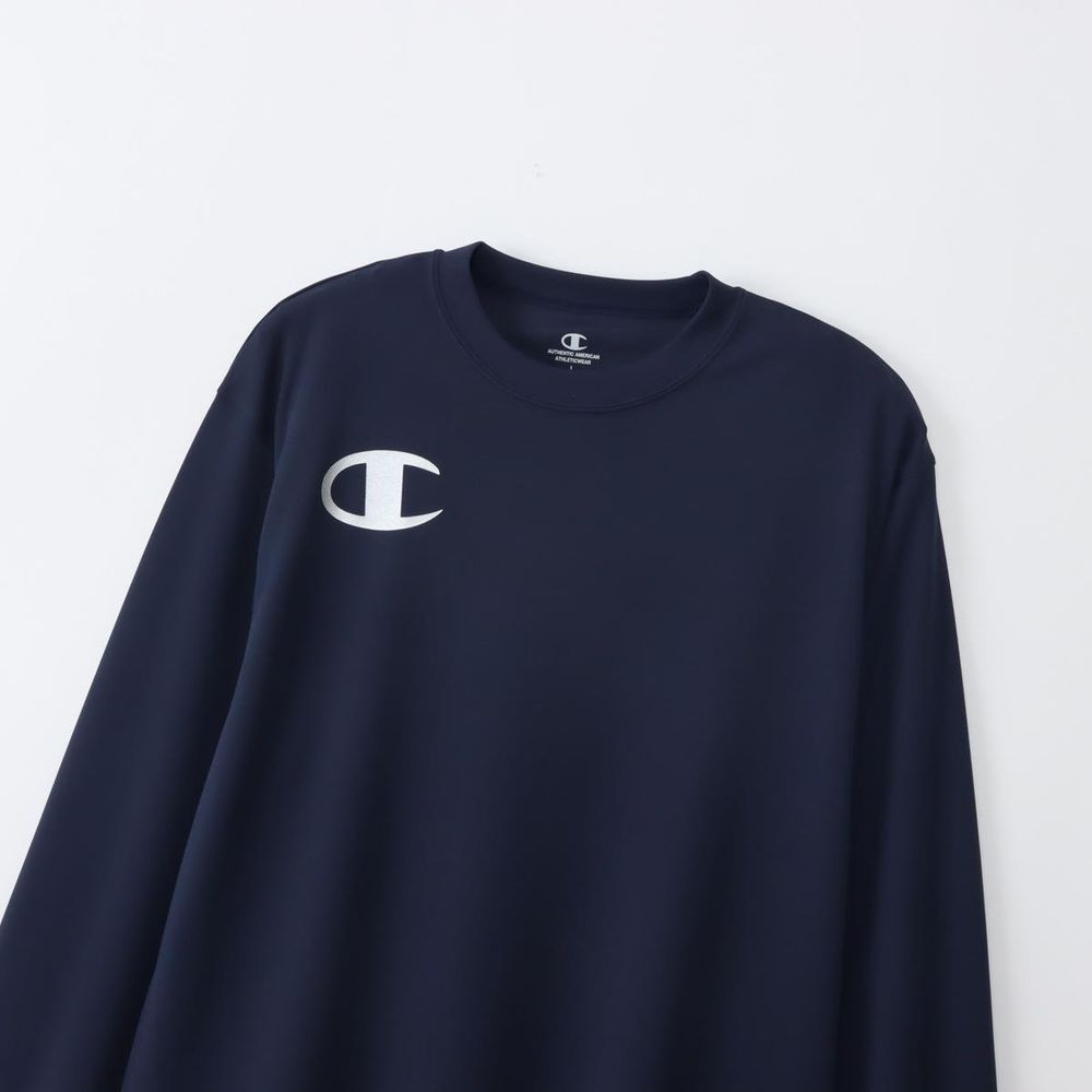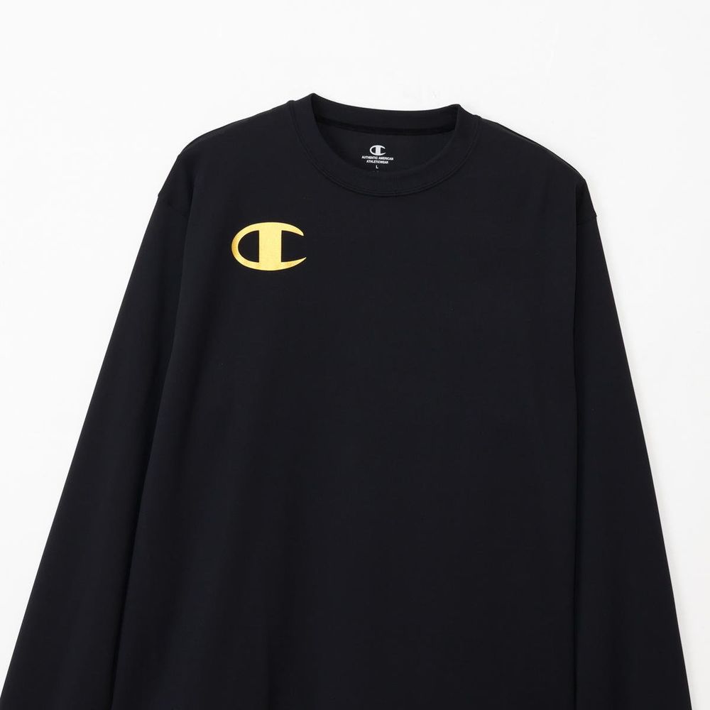 ●環境に配慮されたリサイクルポリエステル100%で、吸汗速乾機能、通気性などの機能を備えた素材に、汗によるニオイの発生をアクティブに抑制し続ける抗菌防臭機能「C ODORLESS(R) by Polygiene」加工を行った生地を使用したロングスリーブTシャツです。脇の縫製ラインを背中側にずらすことで床との接触によるレシーブ時の違和感を軽減するなど、動きやすさにも配慮。右胸にはCロゴ、背中には「Authentic American Athleticwear(オーセンティック アメリカン アスレチックウェア)」と「Champion(チャンピオン)」を手書き風の書体でデザインしたグラフィックをプリント。5色のカラーバリエーションのうち、ブラックxゴールドにはゴールドの、ネイビーにはシルバーのラバープリント。ブラック、グレイッシュライトブルーとイエローグリーンには発泡プリントを使っています。コーディネートしやすいショーツ(C3-CV511)も展開しているので、セットアップでの着用もオススメです。●FEATURES:・ Recycled Polyester ・ Rubber Print