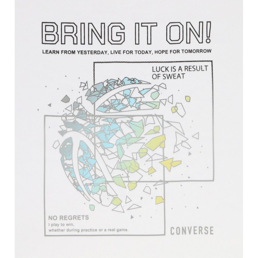 コンバースのロンT。鮮やかなグラデーションを使用したワイヤーフレームのバスケットボールデザイン。柔らかな肌触りに吸汗速乾を兼ね揃えたスポーツ向けアイテム。