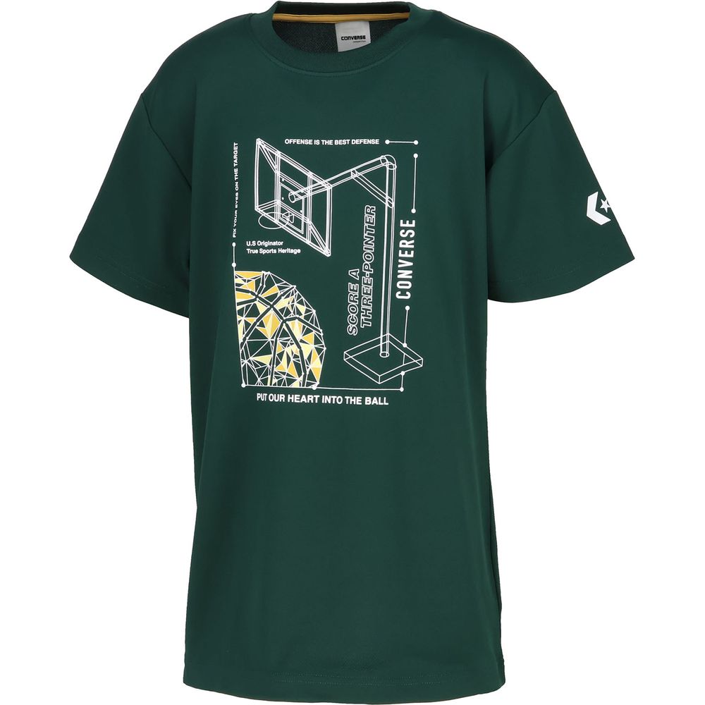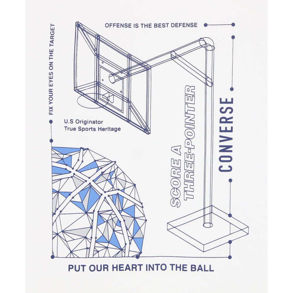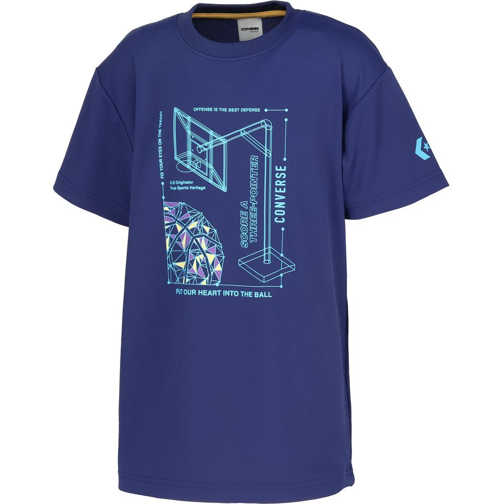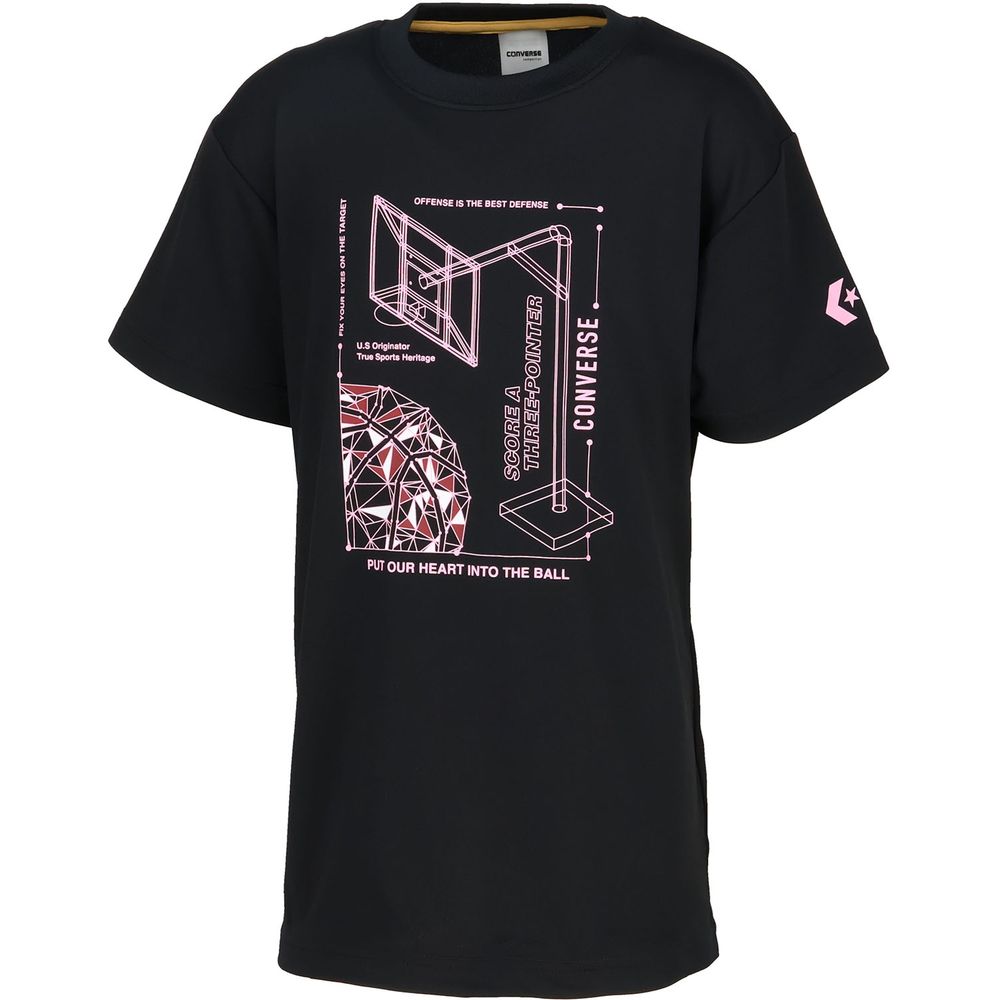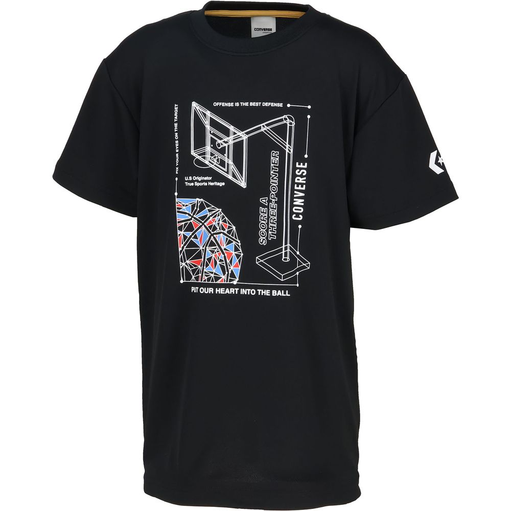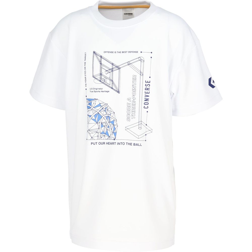 コンバースのジュニアTシャツ。ワイヤーフレームのバスケットボールを表現したデザイン。柔らかな肌触りに吸汗速乾を兼ね揃えたスポーツ向けアイテム。