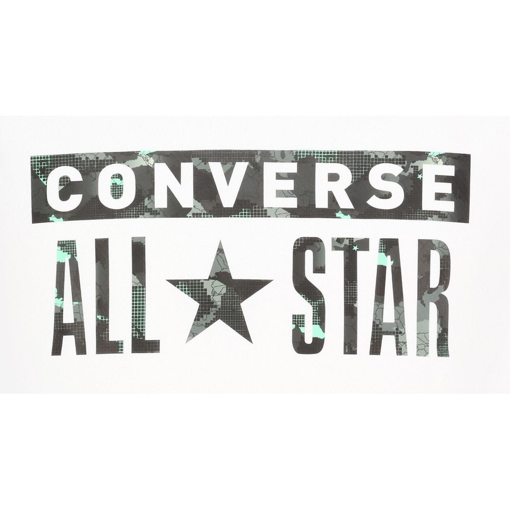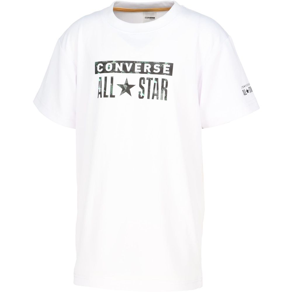 コンバースのALLSTARロゴを迷彩柄で表現したジュニアTシャツ。柔らかな肌触りに吸汗速乾を兼ね揃えたスポーツ向けアイテム。