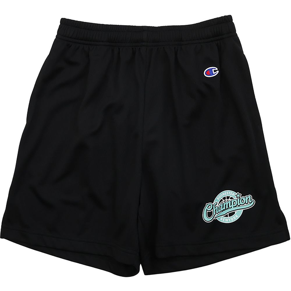 環境に配慮されたリサイクルポリエステル100%で、メッシュ調の素材にストレッチ性と吸汗速乾機能を兼ね備え、汗によるニオイの発生を抑制する抗菌防臭機能「C ODORLESS」加工を行った生地を使用したジュニアショーツです。トレンドのショート丈(150cmサイズ 総丈40cm)で、左裾には「Champion(チャンピオン)」とバスケットボールを組み合わせたエンブレム風のグラフィックをラバープリントで入れています。同様のグラフィックのショートスリーブTシャツ(CK-BB331)も展開しているので、セットアップでの着用もオススメです。