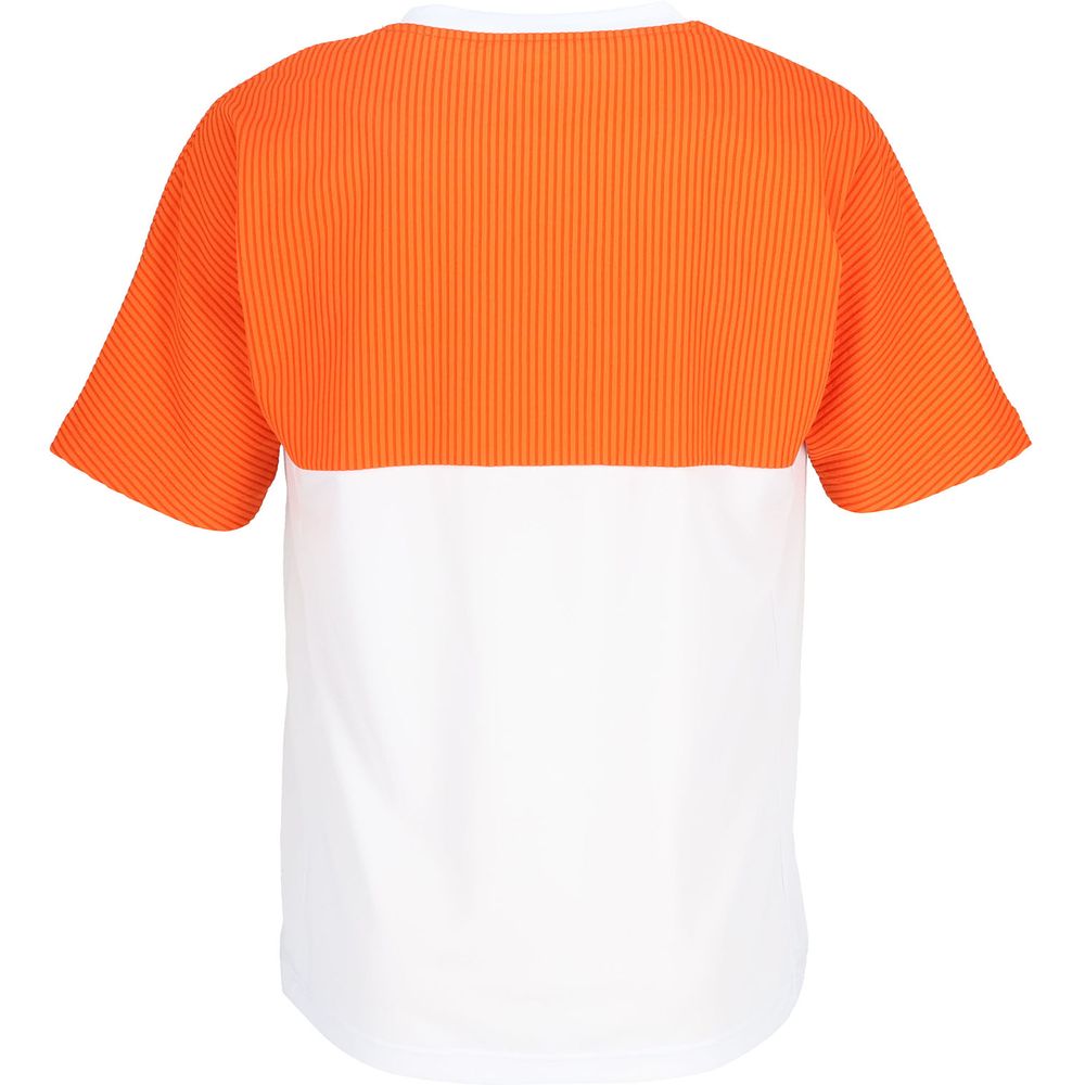 サッカーストライプとバックホールメッシュを切り替えたゲームシャツ。凸凹を用いることでデザイン性だけでなく身体への張り付きを抑える機能も。レディースとのペアコーディネートが楽しめるアイテムです。