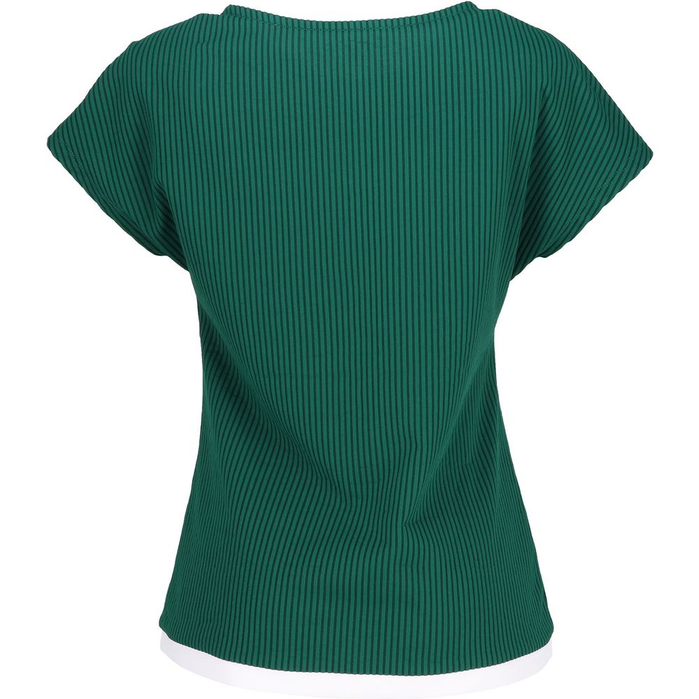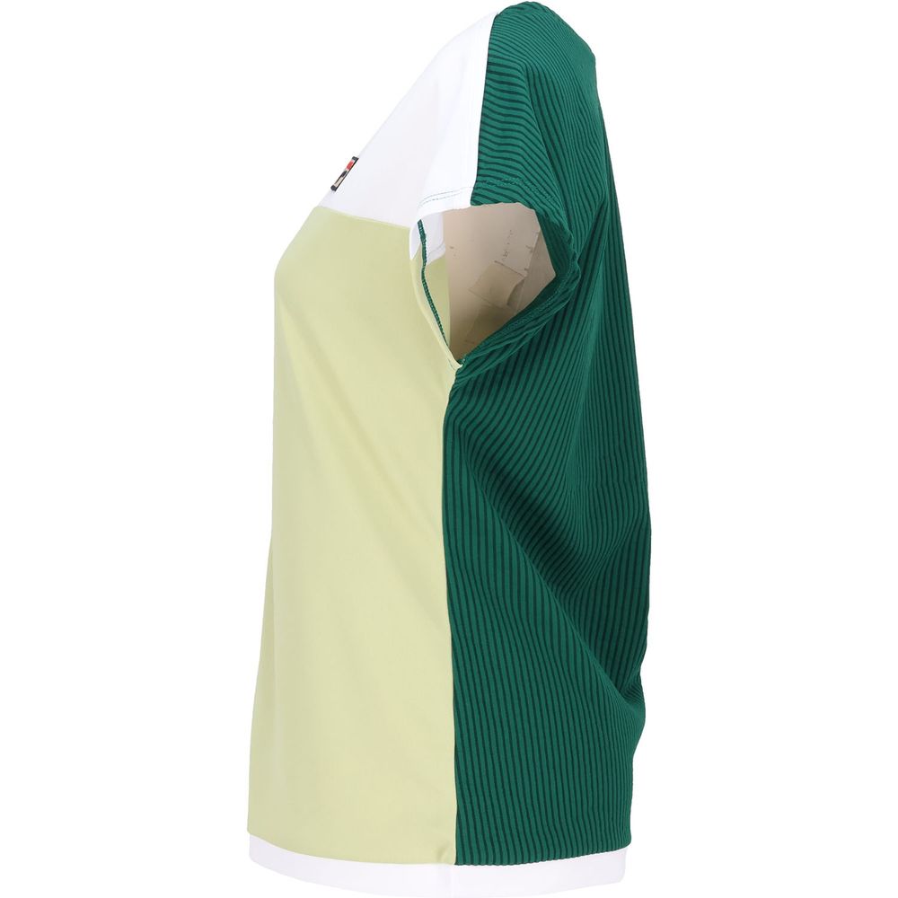 ボートネックのゲームシャツはリズム感ある切り替えで遊び心がポイントです。同柄のスコートや無地のスコートなどアクティブに着こなしてください