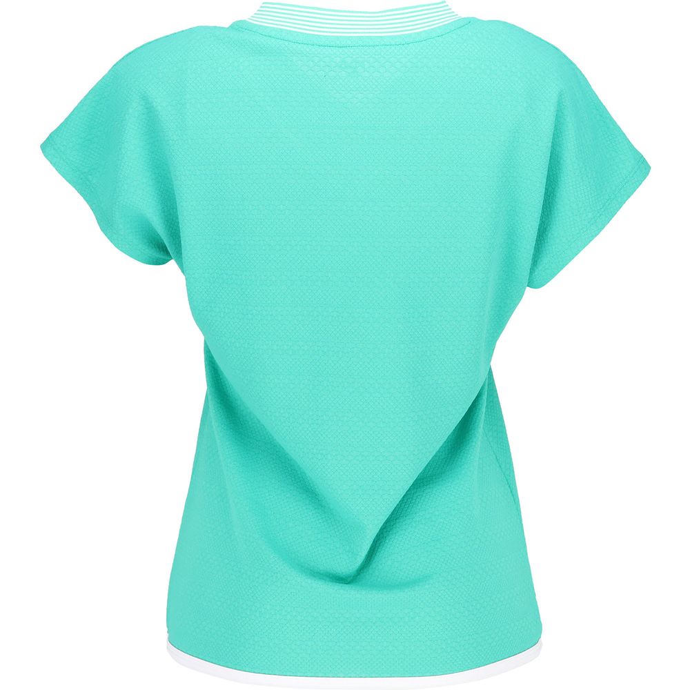 繊細なレースのような上質な素材感をジャガードで表現しました。避暑地を思わせるような上品なタッチのゲームシャツです。同素材のスコートとコーディネートでワンピース風に着こなしてください。