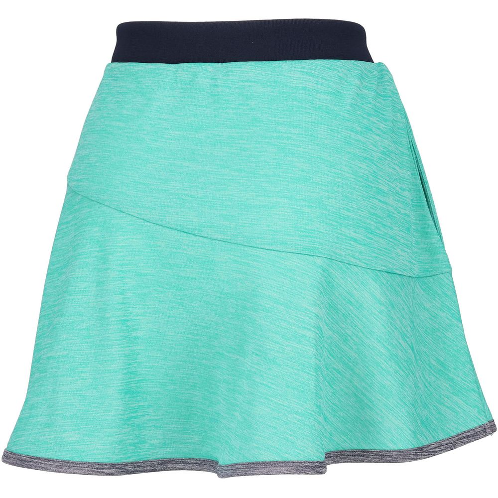 アシメトリーフレアーのスコート。裾の配色が動くたびに揺れてポイントになります。ジャケットやシャツとコーディネートが可能です。
