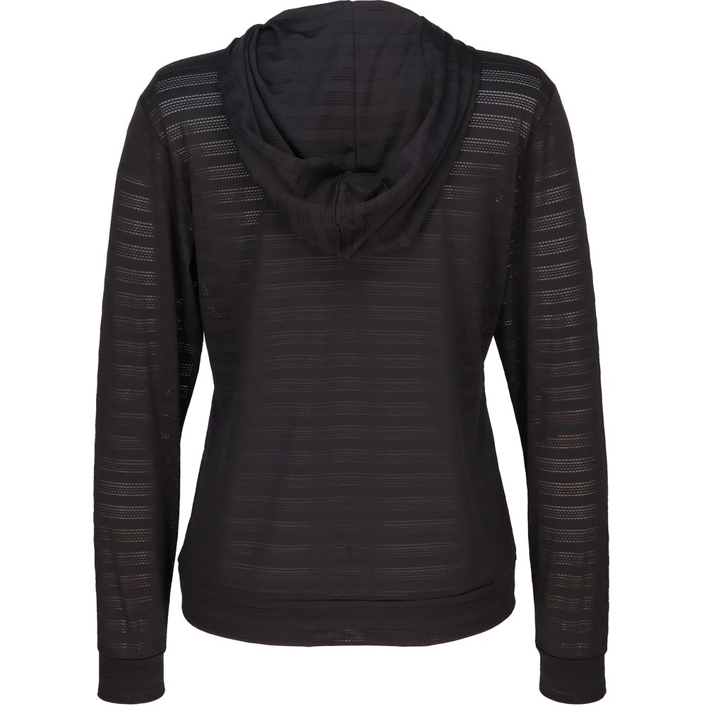 ボーダー状の大きなメッシュから風が吹き抜けていく清涼感と柔らかなストレッチが着心地よいパーカーです。ゲームシャツなど下に着用している色も透けるように1枚仕立てです。
