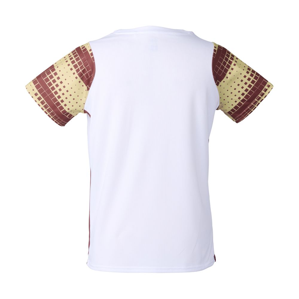 両肩にシーズンテーマのグラフィックを配置した発汗時の肌離れに優れた素材を使用したゲームシャツ。