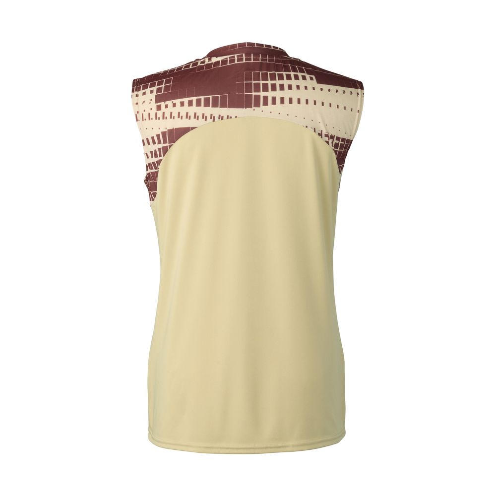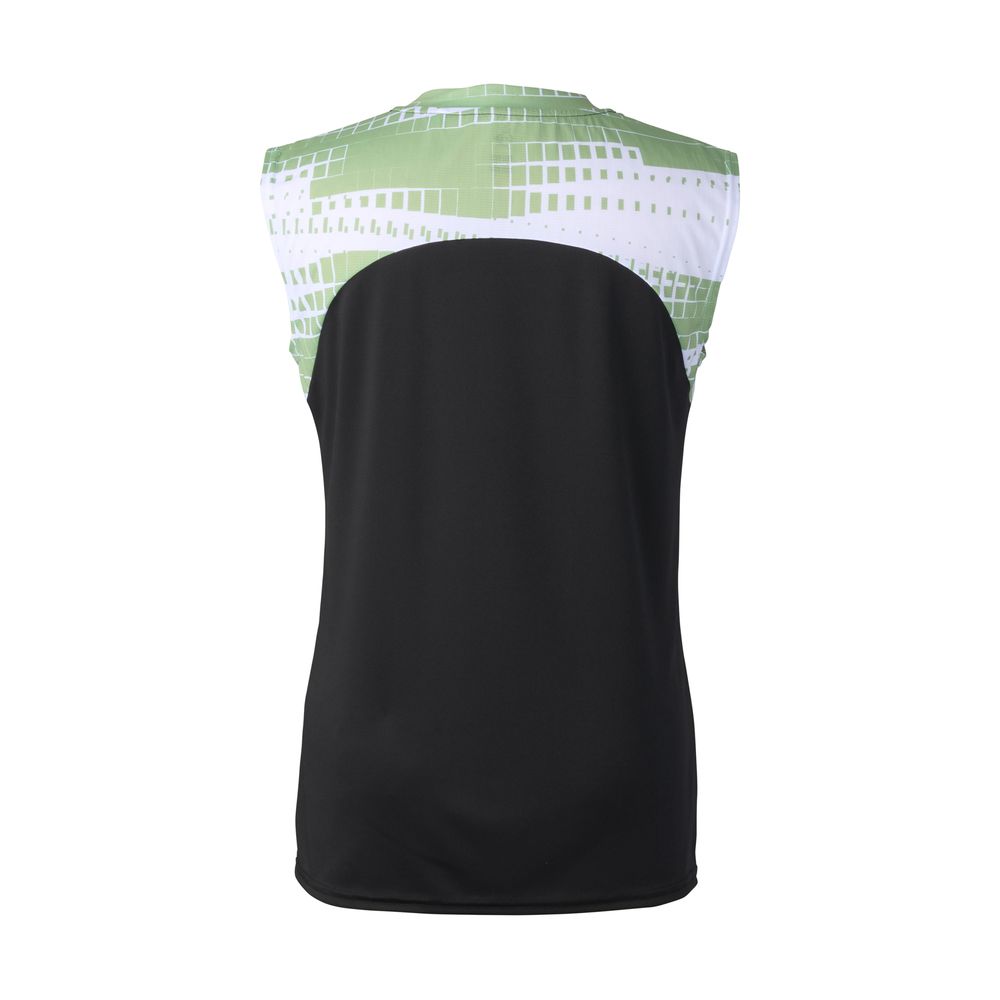 肩回りに薄手な軽量素材を使用したシーズンテーマのグラフィックが特徴的なスリーブレスゲームシャツ。