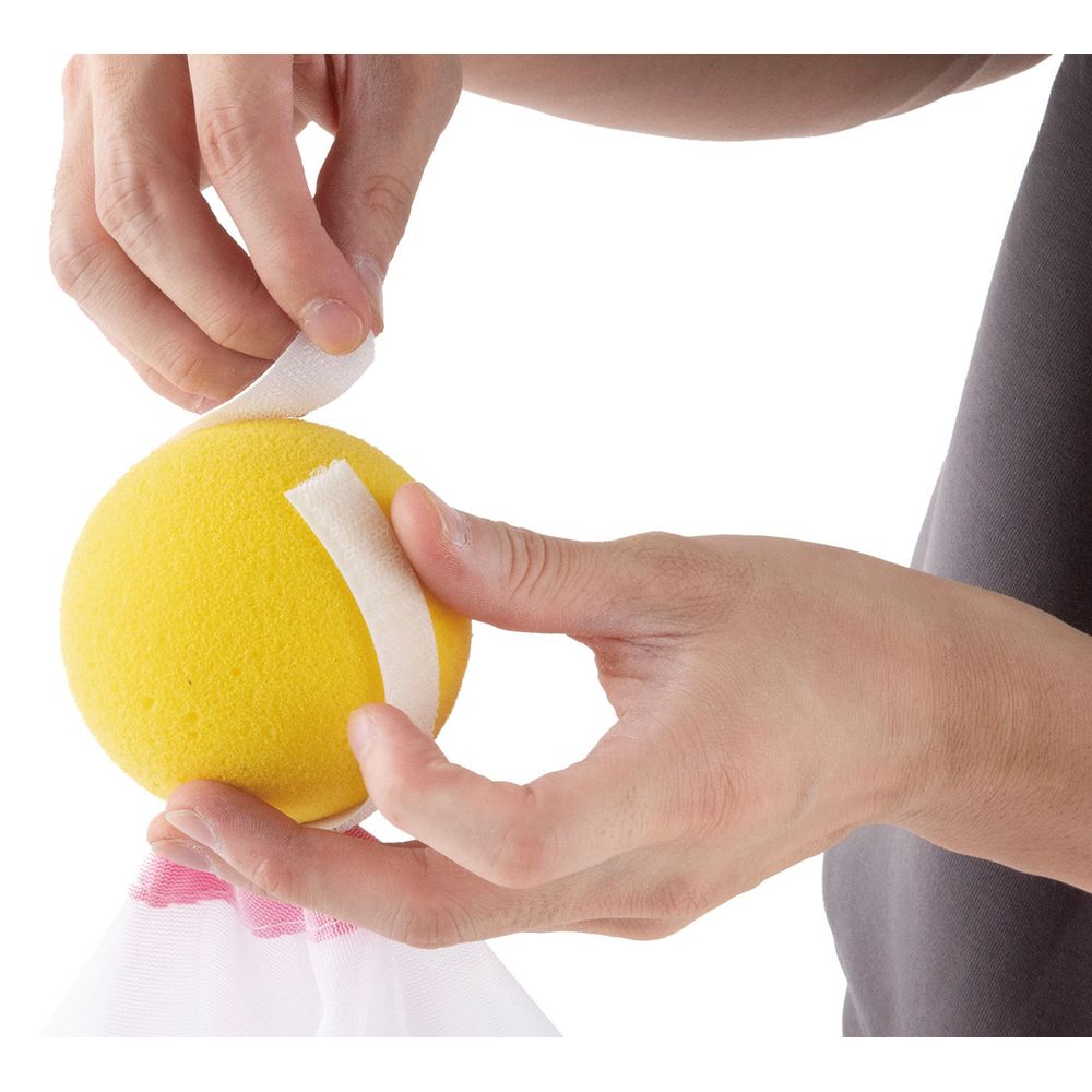 勢いよく投げてもゆっくり落下。だからキャッチするタイミングが取りやすい。ゆらゆら落下して来るので落ち着いて態勢を整えられる。ボールは面ファスナーで付外しが出来ます。