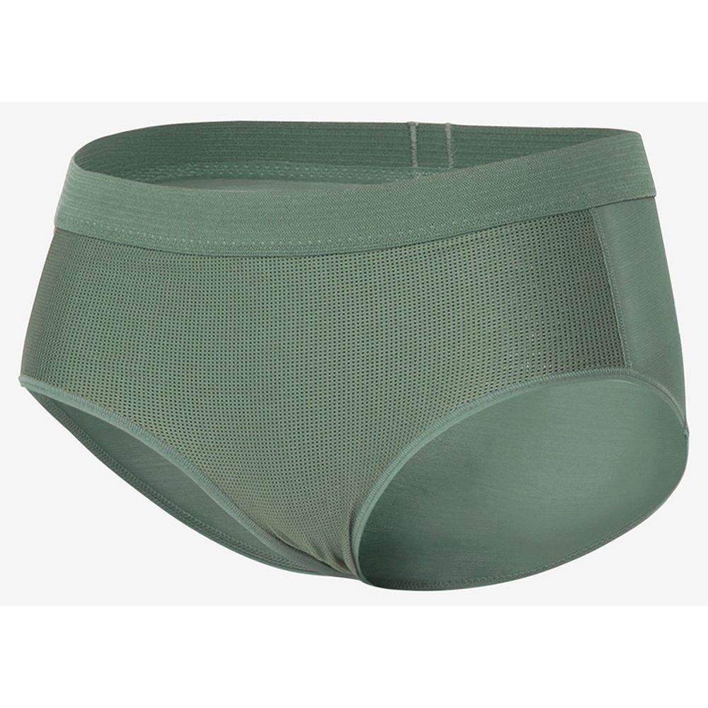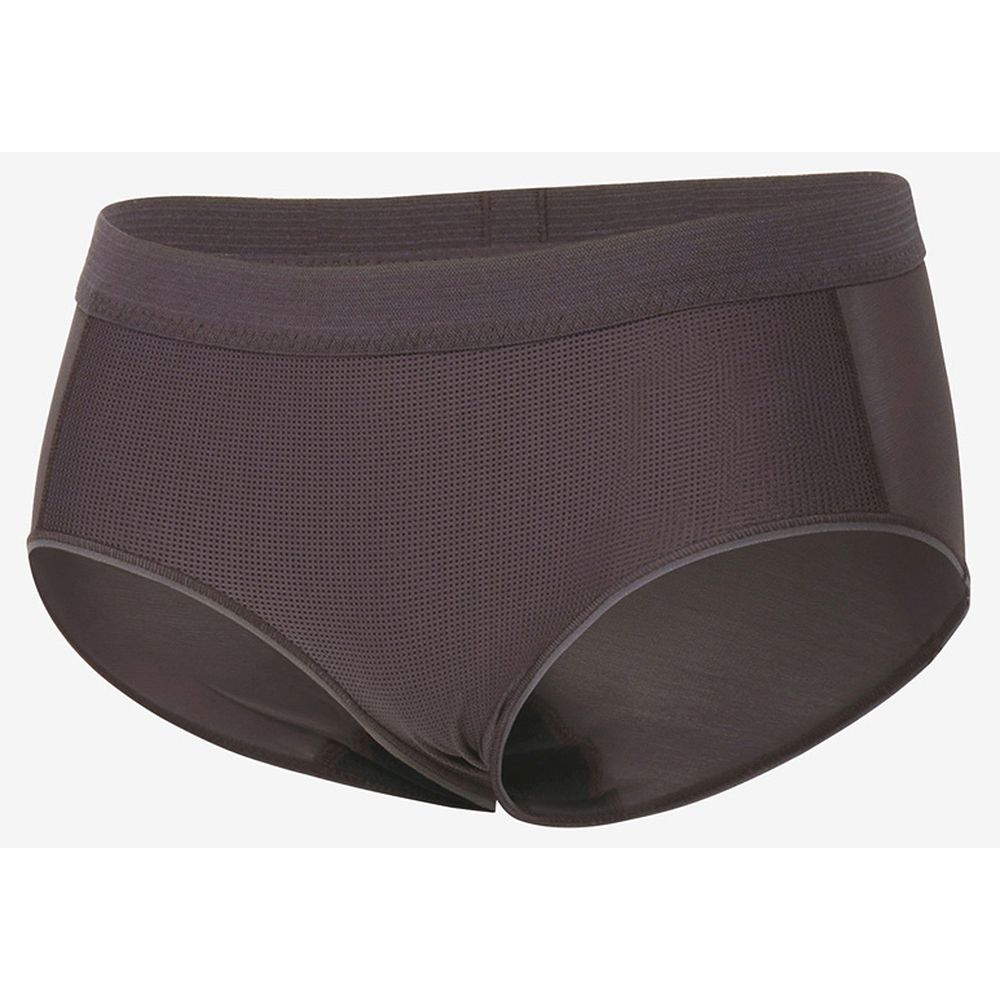 ●吸汗速乾素材とメッシュ生地を組み合わせたスポーツショーツ。前面は、乾きやすく伸縮性に優れた素材を使用。ヒップは通気性の高いメッシュ仕様に切り替えて、発汗時のムレを抑えます。ウエスト部分のゴムは、乾きが早く、肌当たりが柔らかなものを採用。腹部の動きに追従しやすいため、締め付けを感じにくくなっています。脚の付け根部分は、生地の溜まりがこないよう配慮した独自のパターンで設計。環境への負荷に配慮して、素材の一部にリサイクル糸を使用しています。