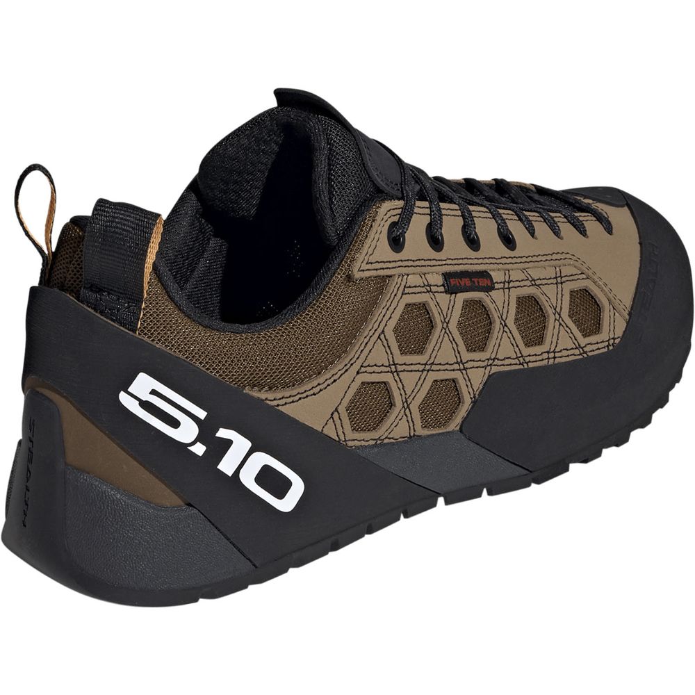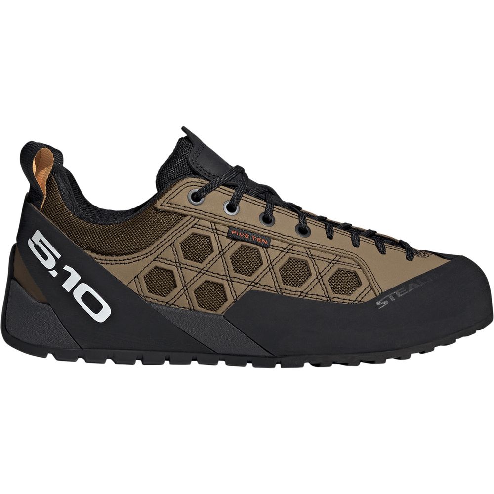 ガイドテニーは、安定性と精度を重視して考え抜かれたデザインで、クライミングとハイキングのどちらもこなしやすい作り。耐久性に優れたレザーアッパーとソフトなテキスタイルライニングを組み合わせることで、ラギッドな地形でも快適さが続き、信頼できる履き心地を感じられるシューズ。Stealth Phantomラバーアウトソールは、あらゆる地形で信頼できるグリップ力を発揮。しっかりとしたシューレースクロージャーとレギュラーフィットを採用したこのアディダスモデルには、伝統的なデザインとモダンな機能が融合しており、目の前の試練に立ち向かう準備を整えてくれる。