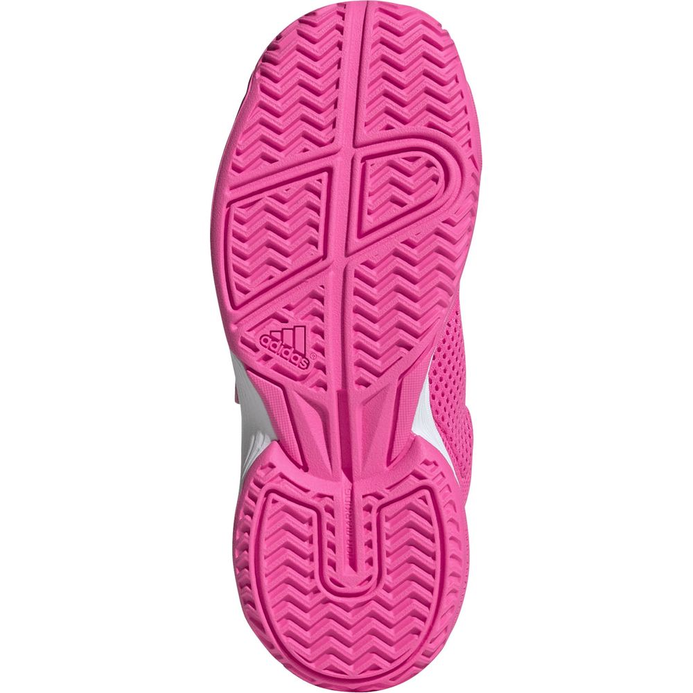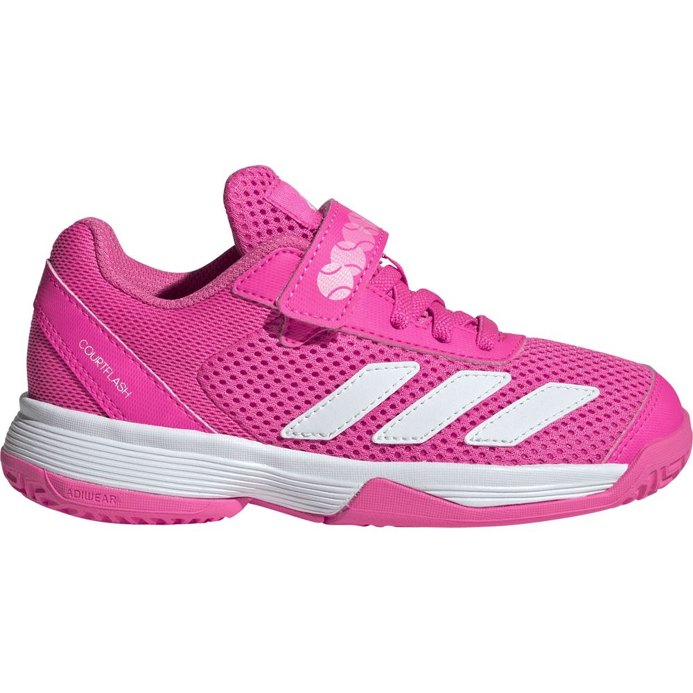 ペースを上げたいテニス初心者に、軽量でサポート力のあるフットウェアを。キッズ用アディダス コートフラッシュのエアメッシュアッパーには、若い選手が集中して全速力で動けるように、シューレースと面ファスナー式のストラップが付いている。サーフェスを問わず素早いカットやフットワークに応える、耐久性に優れたアディウェア アウトソール。