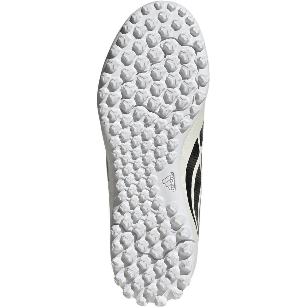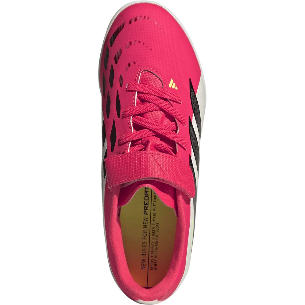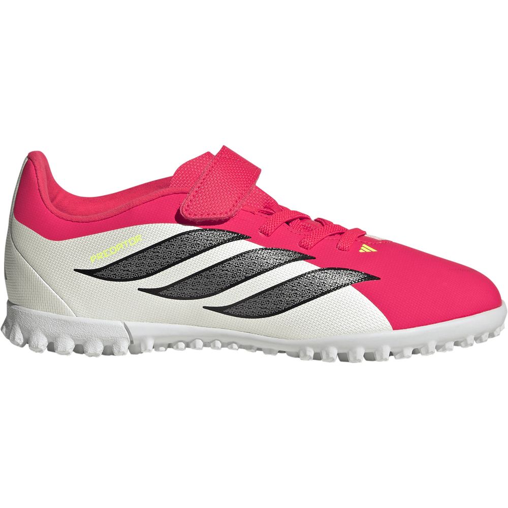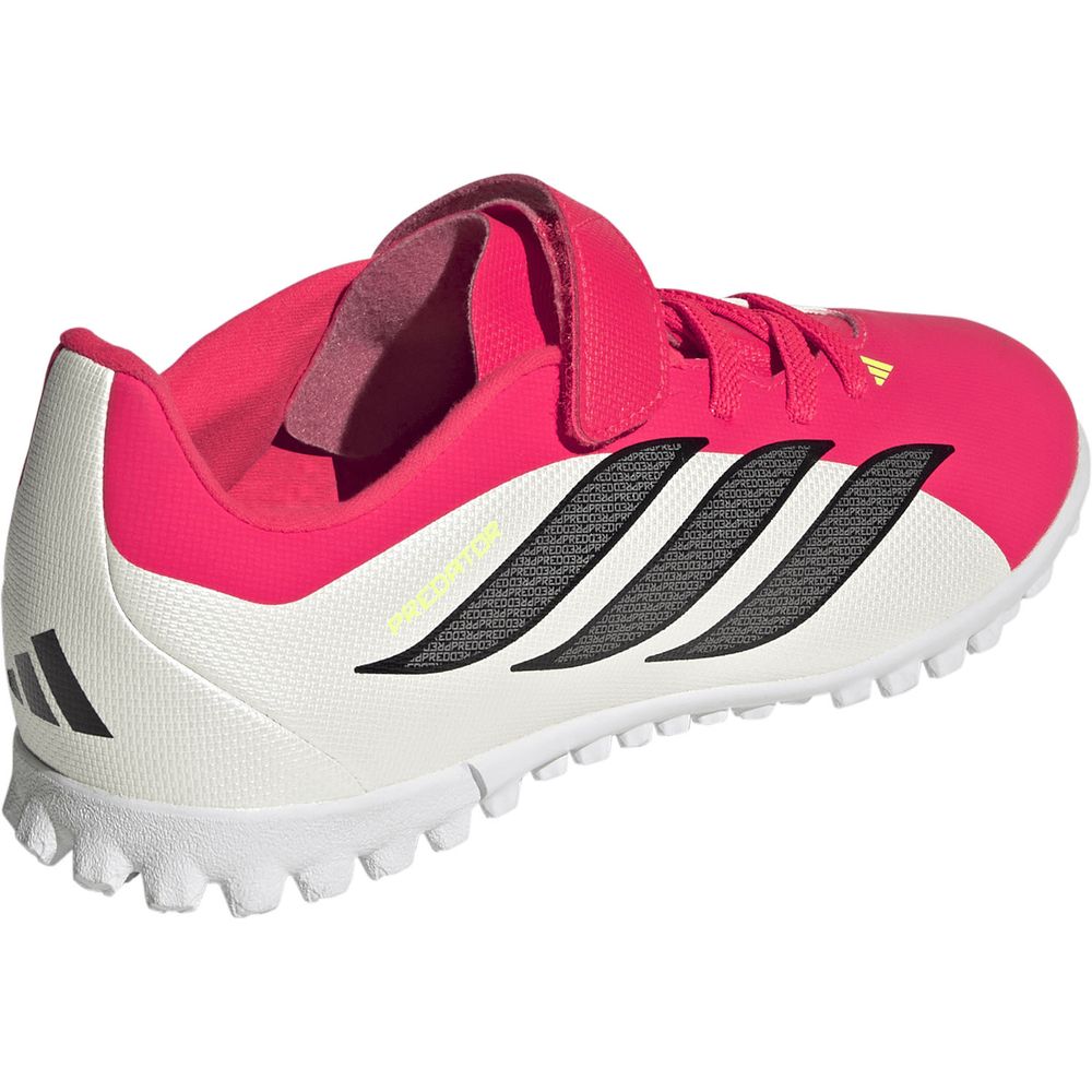 サッカーを愛する子どもたちのためにデザインされた、面ファスナー式のプレデター クラブ ターフコート用キッズサッカーシューズ。快適さとパフォーマンスを兼ね備えているので、どの試合も楽しめる。革新的なメッシュと印象的なナノストライクテクノロジーは、お子様がパワフルなシュートを楽に蹴ることができるようデザインされている。面ファスナー式の伸縮性に優れたストラップとテキスタイルライニングで、ぴったりとした優れたフィット感を実現。ソフトな合成素材のアッパーが快適さと質感をプラスし、ターフサーフェスでのグリップ力を発揮。サッカーにまい進するお子様をサポートするためにデザインされたアディダスのシューズ。
