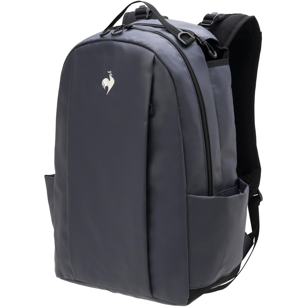 ■素材/艶があり高級感のあるポリエステル素材です。■着用シーン/テニスへ行く際に。ジムやトレーニングに行く際に。■デザイン・機能/ラケット収納スペースや小物ポケットを増やすなど、テニスシーンでの使いやすさにこだわったバックパックです。メインポケットの背面にはギャザーデザインの小物ポケットが2つ、表面にはファスナー付きのメッシュポケットを設置。日焼け止めやグリップテープなど、コートで使用したい小物を収納するのにおすすめです。表には縦に大きく開くシークレットポケットがあり、中身が落ちにくいように配慮した仕様で財布やケータイなど、すぐに出したい物を収納することができます。肩パッドには長さ調節のできるベルトがあるので、フィット感があります。両サイドのポケットは底部がメッシュになっているので、ペットボトルや傘などを収納しても水が溜りにくい設計です。ラケットは1~2本収納可(※)丸みのあるフォルムで年齢性別問わず使いやすいデザインに仕上げました。ルコックスポルティフのこだわりが詰まったラケットバッグです!(※)ラケットのサイズなどで収納可能本数は異なります。