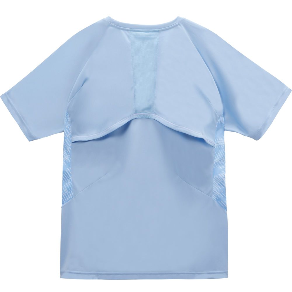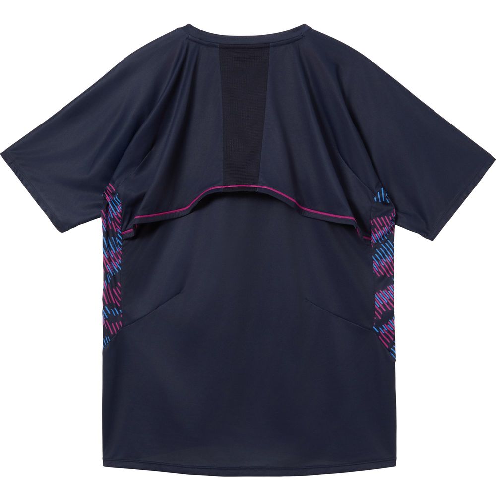 軽量性・背面ベンチレーション仕様・「Aileforme」パターンを特徴としており、ギアとしてのアパレルを目指したアイテム。背面のベンチレーションから、衣服内に空気を取り込むことで、蒸れた空気を輩出し、体温上昇により不快感を軽減。テニスをされる方の優雅な動きに寄り添うことができるしなやかでコンフォートなテニスウェア。テニスの基本動作である、サーブ・ストローク・ボレーの動きに着目し、DISCで検証し開発したウェア。動作時のストレスをダーツとパターンで解消した「Aileforme」パターンを搭載したゲームシャツ。脇部分には水面にうつる光と影をモチーフにしたデザインを採用。JTA(日本テニス協会)の定めるウェア規定を満たしたテニスウェア。LN6SHP00Mとの合わせがオススメ。