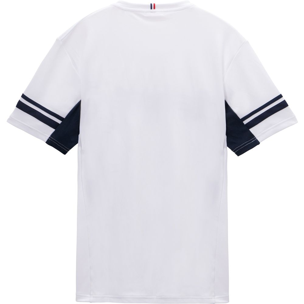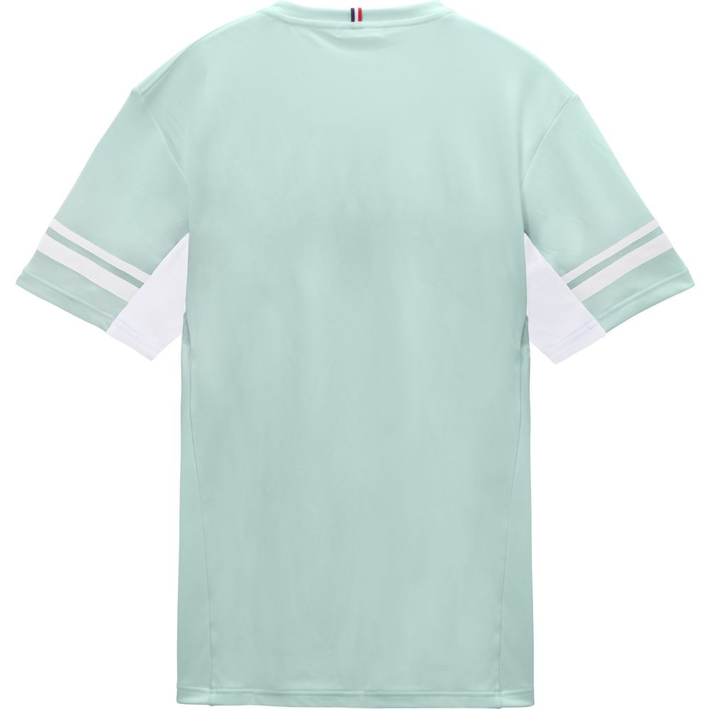 暑い季節にも心地よいルコックスポルティフ至上一番冷たい接触冷感素材を採用したゲームシャツ。ナイロンよりも熱伝導率が高く、冷たく感じるポリエチレン混素材を肌面に採用。4大臭(アンモニア、酢酸、イソ吉草酸、ノネナール)を全て70%以上カット出来る消臭テープを付与することで、匂いを気にせず着用可能に。JTA(日本テニス協会)の定めるウェア規定を満たしたテニスウェア。