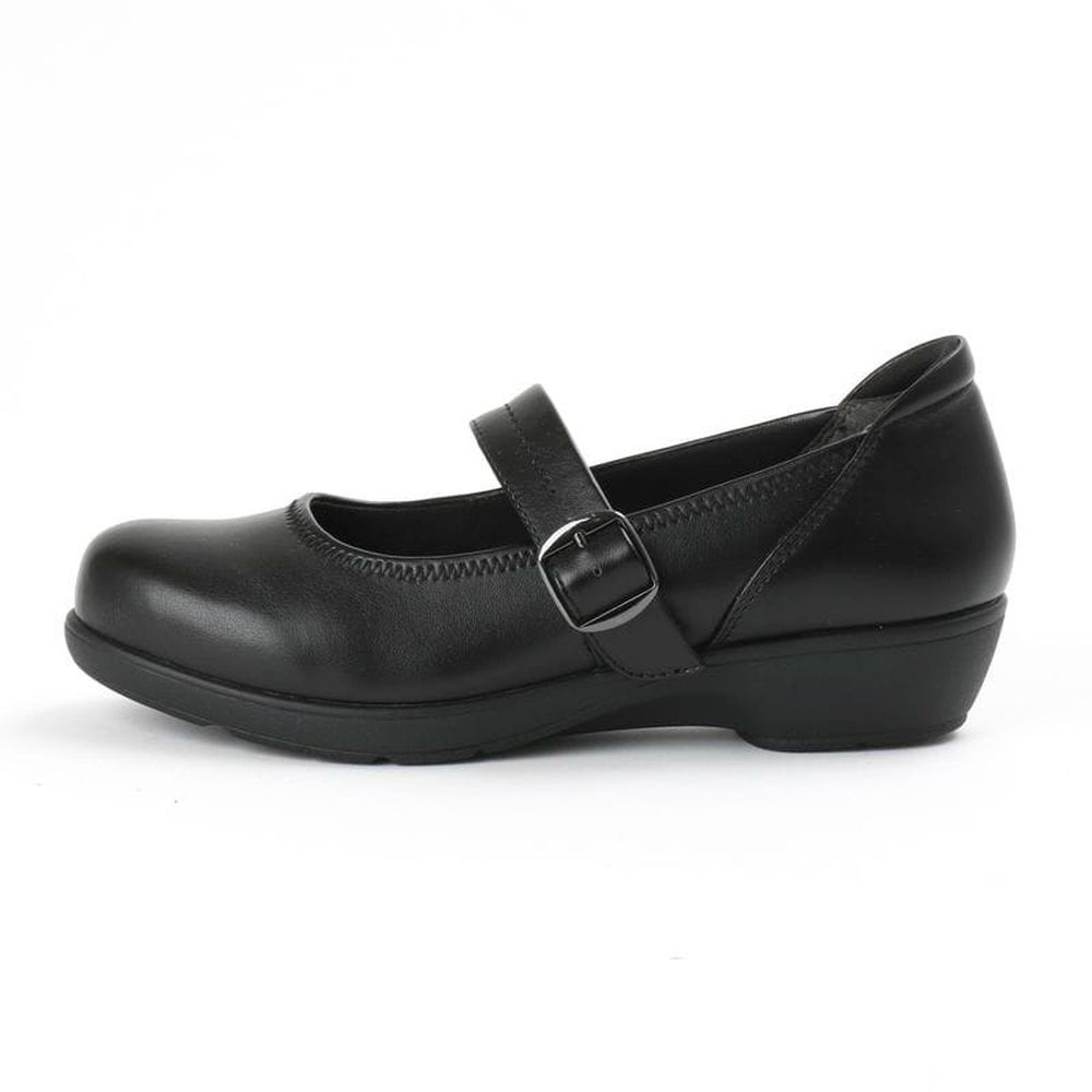 ●【立ち仕事に!バレエタイプ | 長さ調節可能な隠しゴム付きベルト】 ・立ち仕事をする女性へのアンケート調査をもとに商品化。約3.5cmヒールのバレエタイプ。 ・ウイズ:3E相当 ・靴の内側のつま先部分に消臭繊維MOFFを採用。 ・取り外し可能な立体感のある中敷。アーチサポートと着地時の衝撃緩衝を追求した設計。 ・もちもちとしたクッション感のあるポリウレタン底でソフトな履き心地を追求。 ・履き心地にこだわったラスト(靴型)設計。 ・ベルト付きデザインでかかと抜けを抑制。