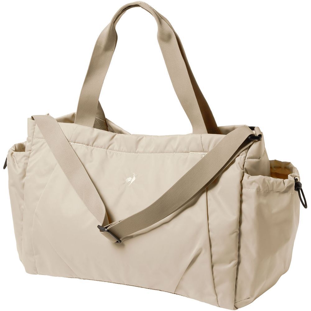 【軽量で上品】上品で光沢感のあるポリエステル素材が、きれいめな印象を演出。軽量感があり、持ち運びに便利な2WAYトートバッグ。【大容量】容量はメインルームだけで約24Lと十分にあり、A4サイズ・PC・タブレット・衣類・シューズなどが入る便利なサイズ感。旅行や出張だけでなく、マザーズバッグとしても使用が可能。トートとショルダーの2WAYスタイルで様々なシーンに大活躍。※ショルダーベルトは取り外し不可。【多機能ポケット】両サイドのポケットはゴム紐を絞ることで間口の調節が可能。メイン収納スペースには中身が見えて且つ衛生的なメッシュポケットを設置。スマートフォンはもちろん、イヤフォンやハンカチ、キーケースなどの小物を入れてもすぐに取り出すことが可能。500mlのペットボトルが縦に入るサイズ感のボトルポケット付き。関連商品/LT5SBP10U(バックパック)LT5FBZ11U(ショルダーバッグ)LT5FBZ10U(ボディバッグ)LT5FCP13U(キャップ)LT5FCP22U(ニットキャップ)LT5FCP20U(キルティングハット)。le coq sportif 1882年にフランスで創業したスポーツウェアブランドです。世界中から長く愛用されています。デザイン&コンフォートをブランドミッションとし、スポーツをはじめとするあらゆるシーンで、自分らしく遊び心ある生き方に寄り添います。