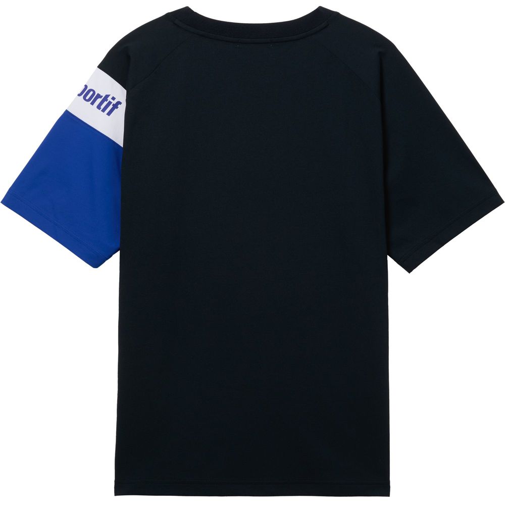 上質で高級感のある表面感が特徴の半袖Tシャツ。左腕のスポーティな切替デザインが特徴。