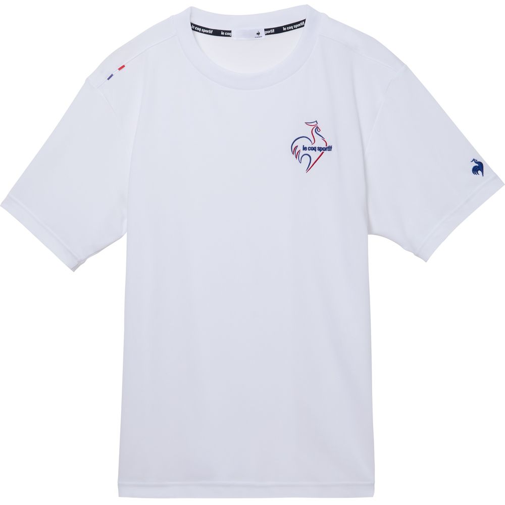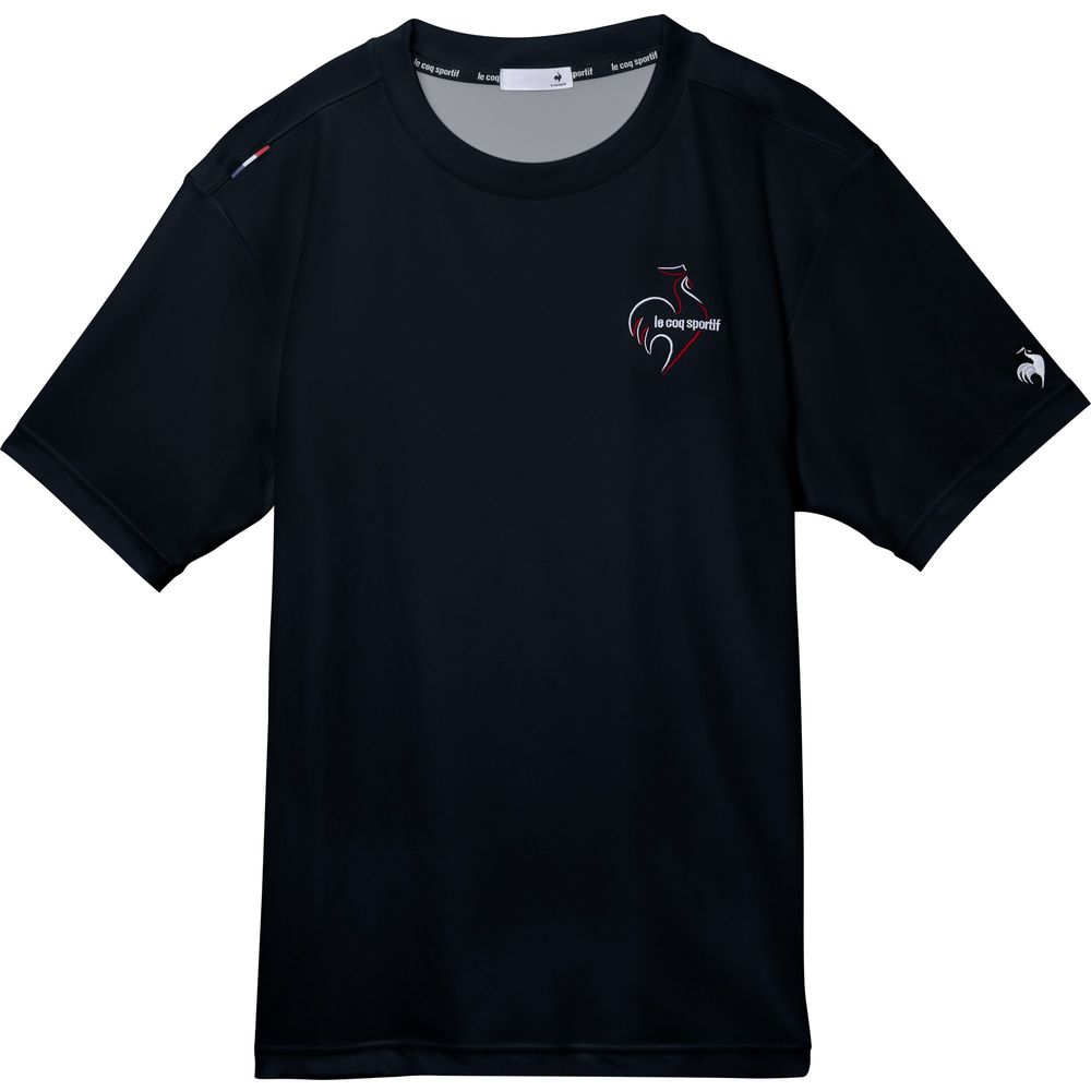 暑い季節にも心地よいルコックスポルティフ至上一番の接触冷感機能を持つ素材を採用した半袖Tシャツ。ナイロンよりも熱伝導率が高く、ひんやり感じるポリエチレン混素材を肌面に採用。左胸の刺繍ロゴがデザインアクセントに。