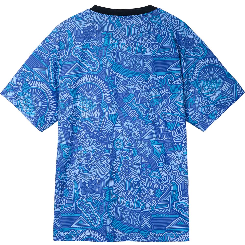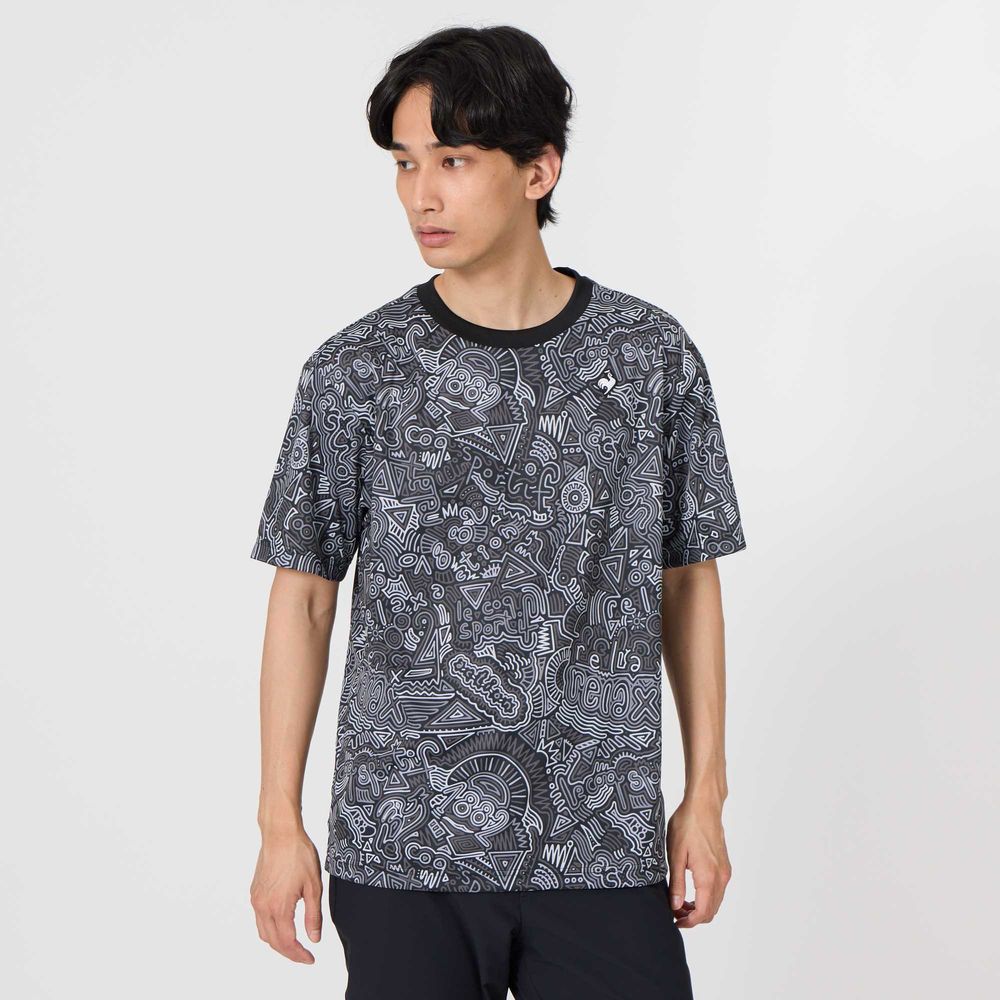 南仏のリゾートをイメージした遊び心のある総柄デザインを採用したスポーティなグラフィック半袖Tシャツ。胸のロゴは遊び心のある立体的なワッペンを採用。