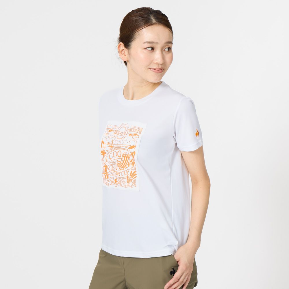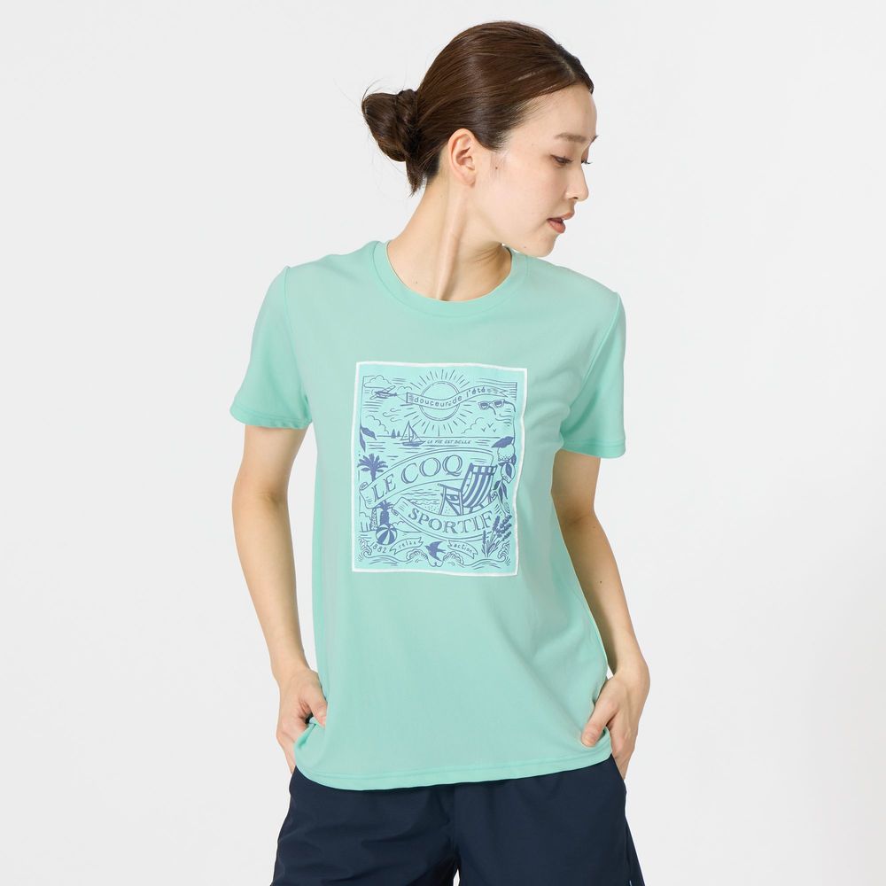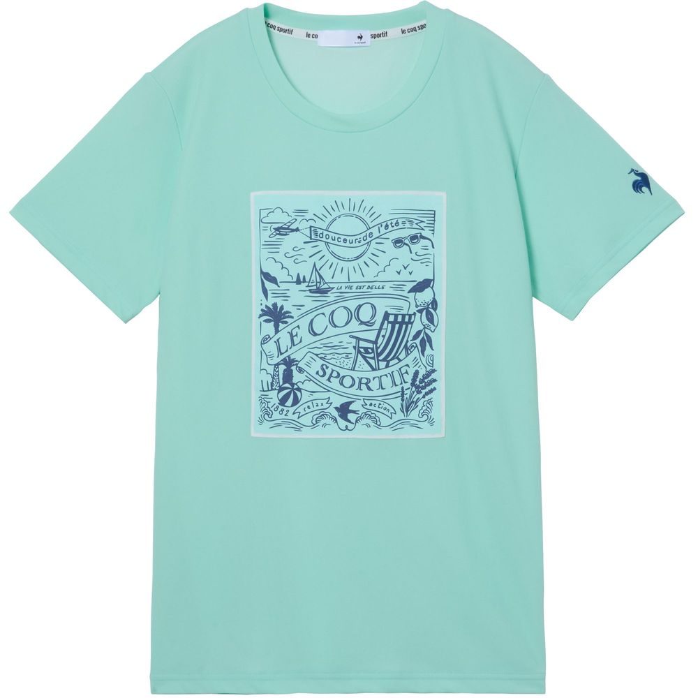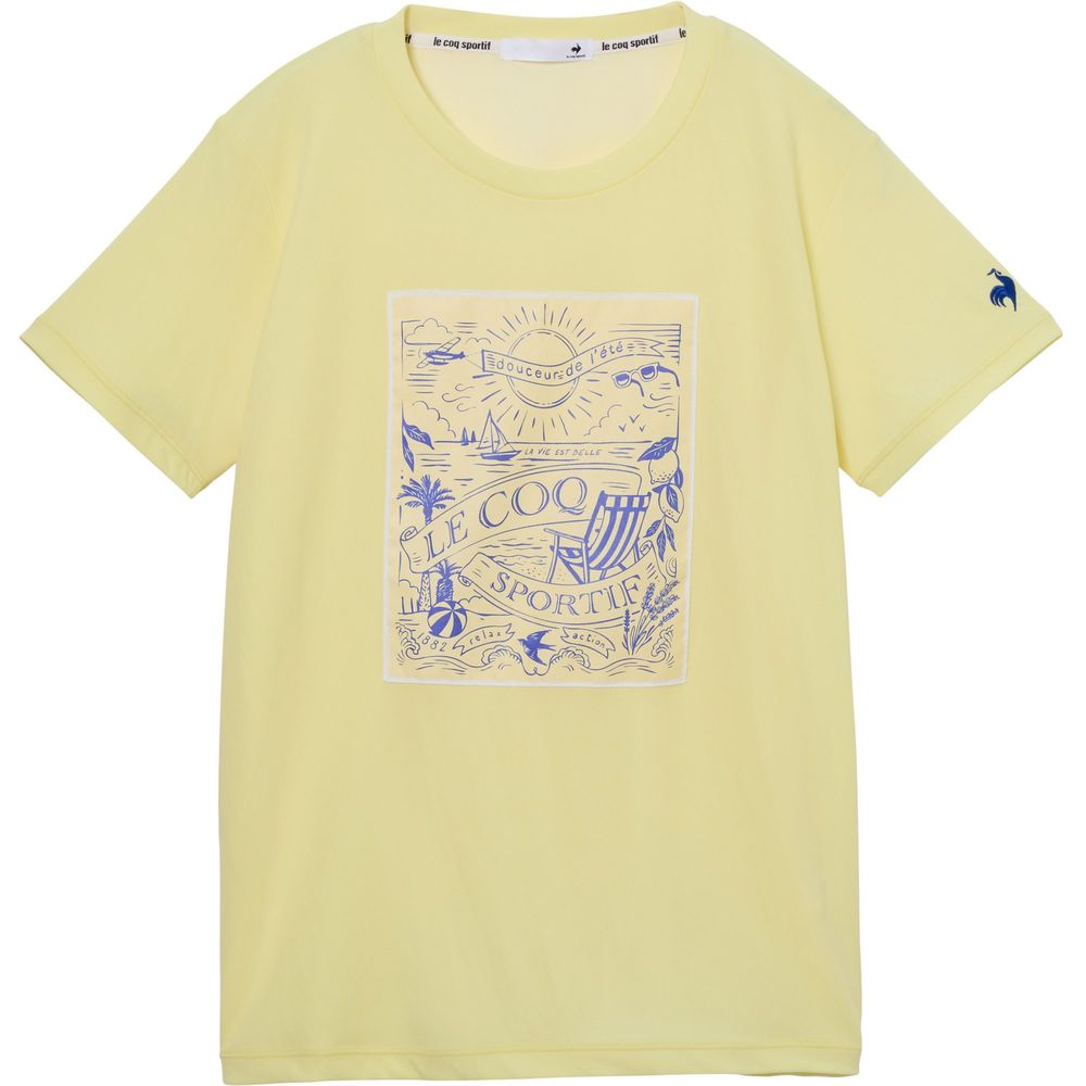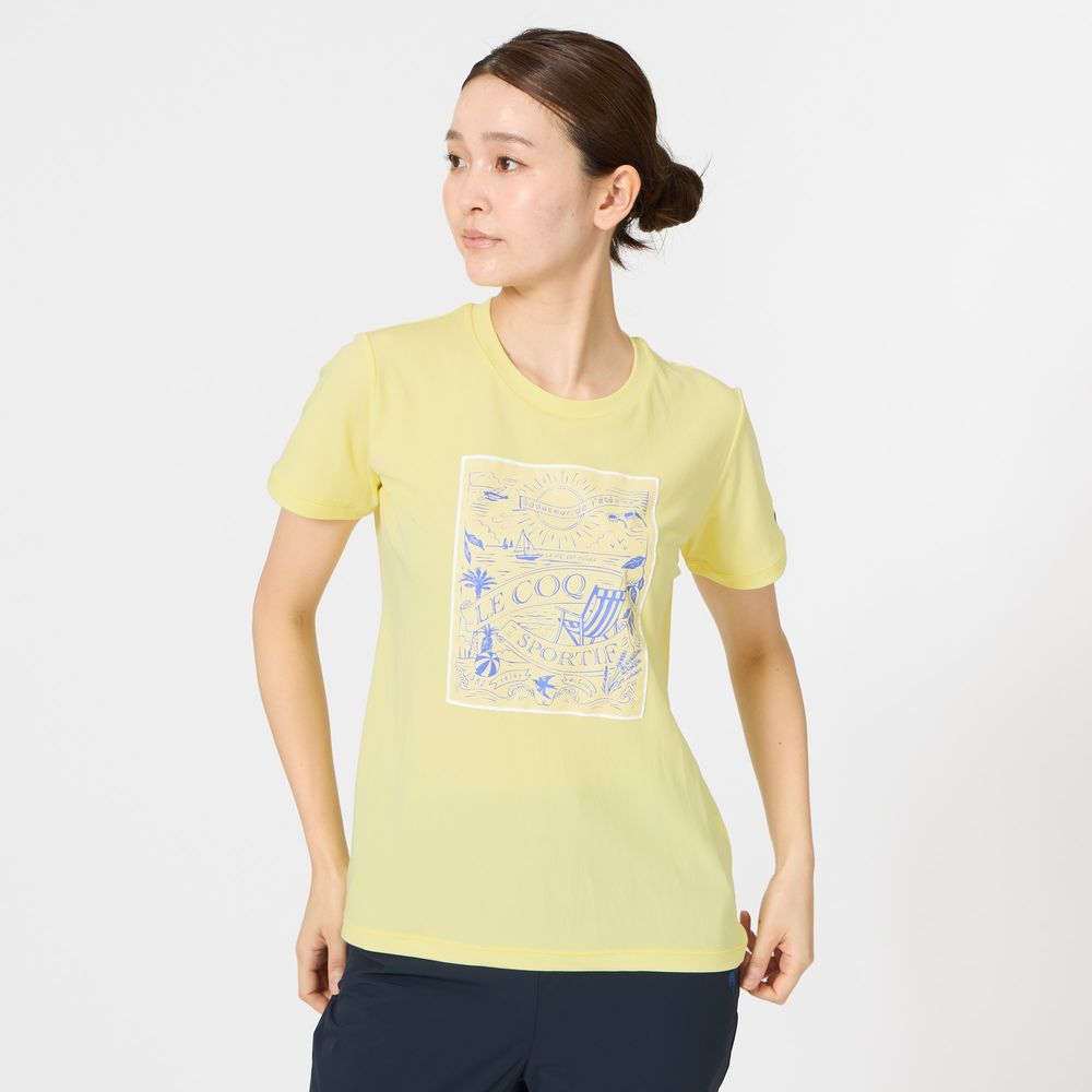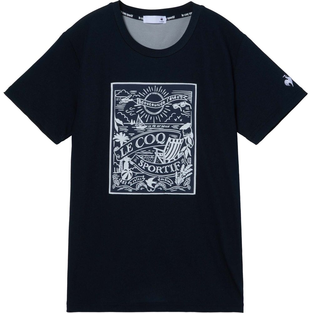 暑い季節にも心地よいルコックスポルティフ至上一番の接触冷感機能を持つ素材を採用した半袖Tシャツ。ナイロンよりも熱伝導率が高く、ひんやりと感じるポリエチレン混素材を肌面に採用。26SSは、南仏の海辺をイメージした爽やかでリラックスしたムードのデザインがポイント。前身頃に大胆に配置したグラフィックは、ビーチと港からインスピレーションを得たシーズンを象徴するデザイン。