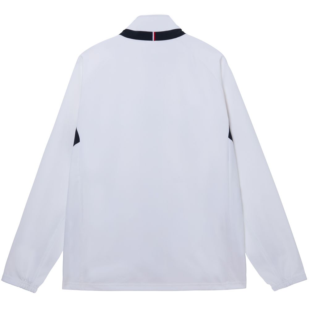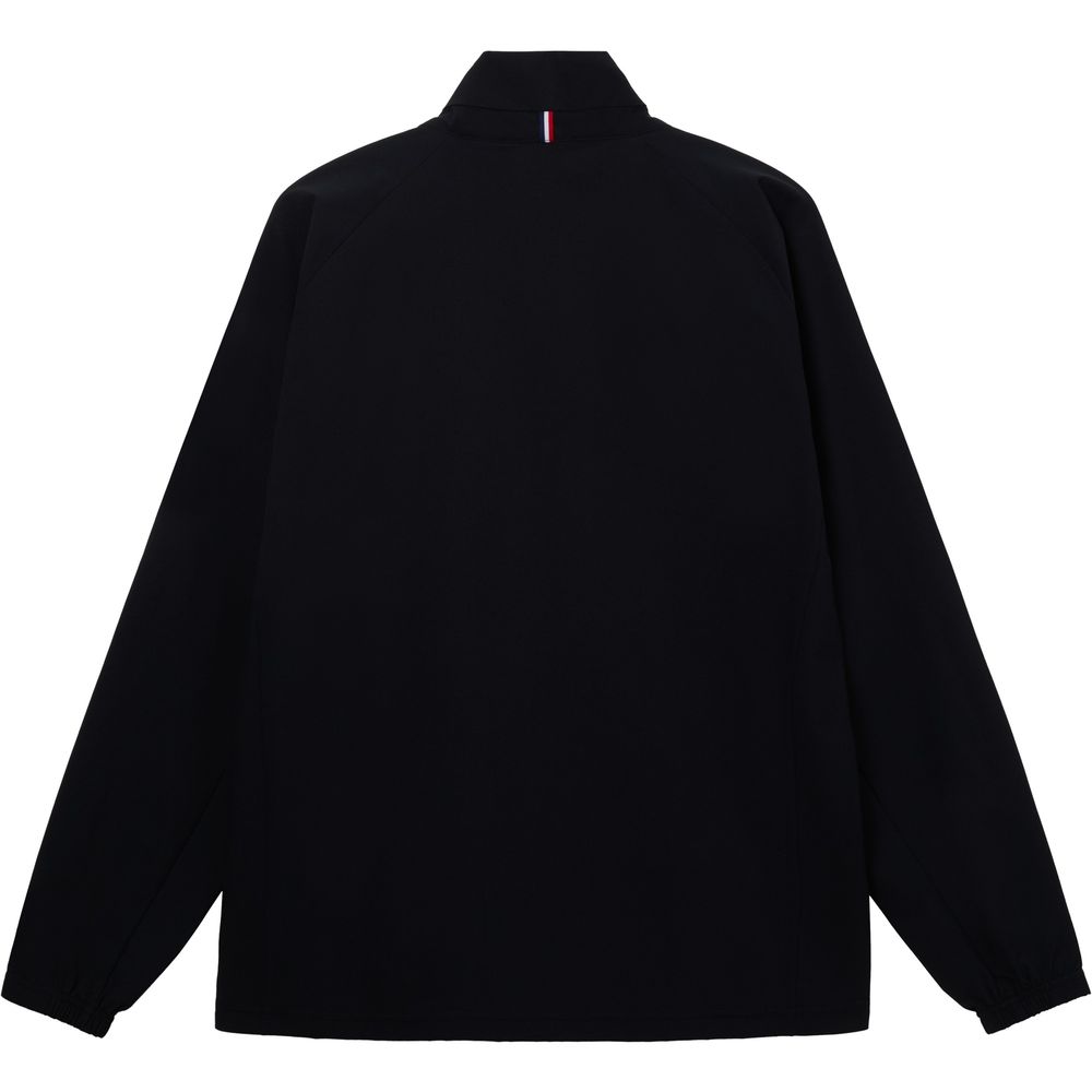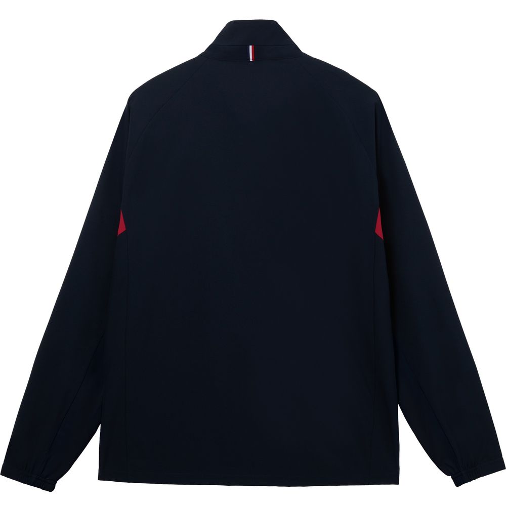 軽やかに伸びて形態安定性に優れたソフトな風合いの素材を使用したセットアップで使用できるフルジップジャケット。前胸のスポーティーなロゴデザインがポイント。