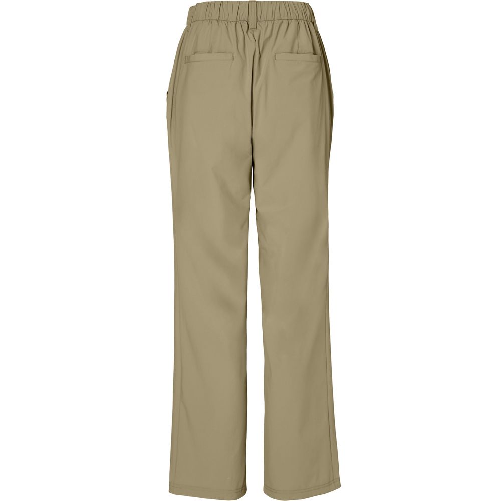 身体のラインを拾いにくいストレートシルエット。10分丈。ウエストは、前開き+紐付き仕様。ベルトループ付き。左右ポケット付き。後ろポケット2つあり。