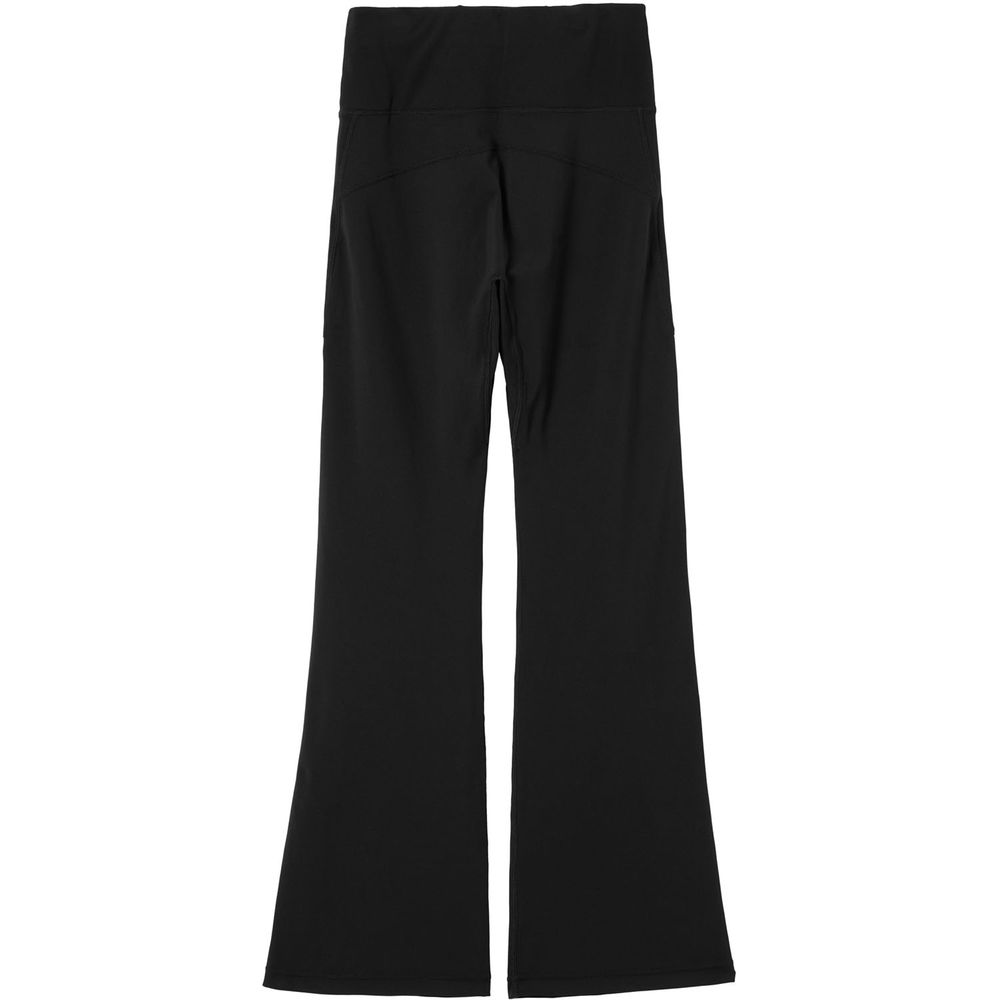 左腰あたりに配置した、上品さと高級感を演出してくれるメタリック調のロゴがデザインポイント。素材のストレッチ性を最大化するルフフォルムパターンとひざから裾にかけて広がるフレアシルエットが特徴。「Body Line Protection」シリーズ。ボディーラインを程よく隠してくれる独自のシルエットを採用。ピーチスキン加工を施した肌あたりの良いソフトな素材を採用。シルエット/ルフフォルムのパターンで、身頃を一枚構造にすることで素材のストレッチ性を最大化。縫い代を限りなく少なくすることで、肌当たりの軽減も実現。ウエストからひざまで体をしっかり包み込み、ひざから裾にかけて広がるフレアシルエット。お尻が隠れる長さのトップスを合わせた、シルエットの綺麗なパンツとしての普段使いもおすすめ。また、ウエストバンドには鍵やカード、携帯電話等の小物を収納できるポケット付き。ヨガやスタジオの行きかえりにもおすすめ。