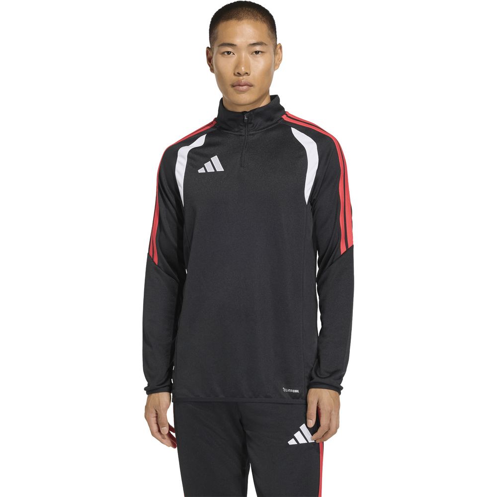 ティロ26リーグ・トレーニング・トップスを着て、トレーニングピッチでシャープに決めよう。光沢のある外観と考え抜かれたディテールの、プロにインスパイアされたデザインが特徴。涼しく、ドライな履き心地が続くから、いつでもプレーの準備は万端。クライマクールが汗を吸収、発散し、涼しくドライな状態をキープするから、ゲームに集中できる。クォータージップ式なので、暑くなったらすぐ脱げる。ダブルニット生地を採用しており、セッションを重ねても快適さが続くから、夜のトレーニングで寒さを感じたときは、また重ね着しよう。