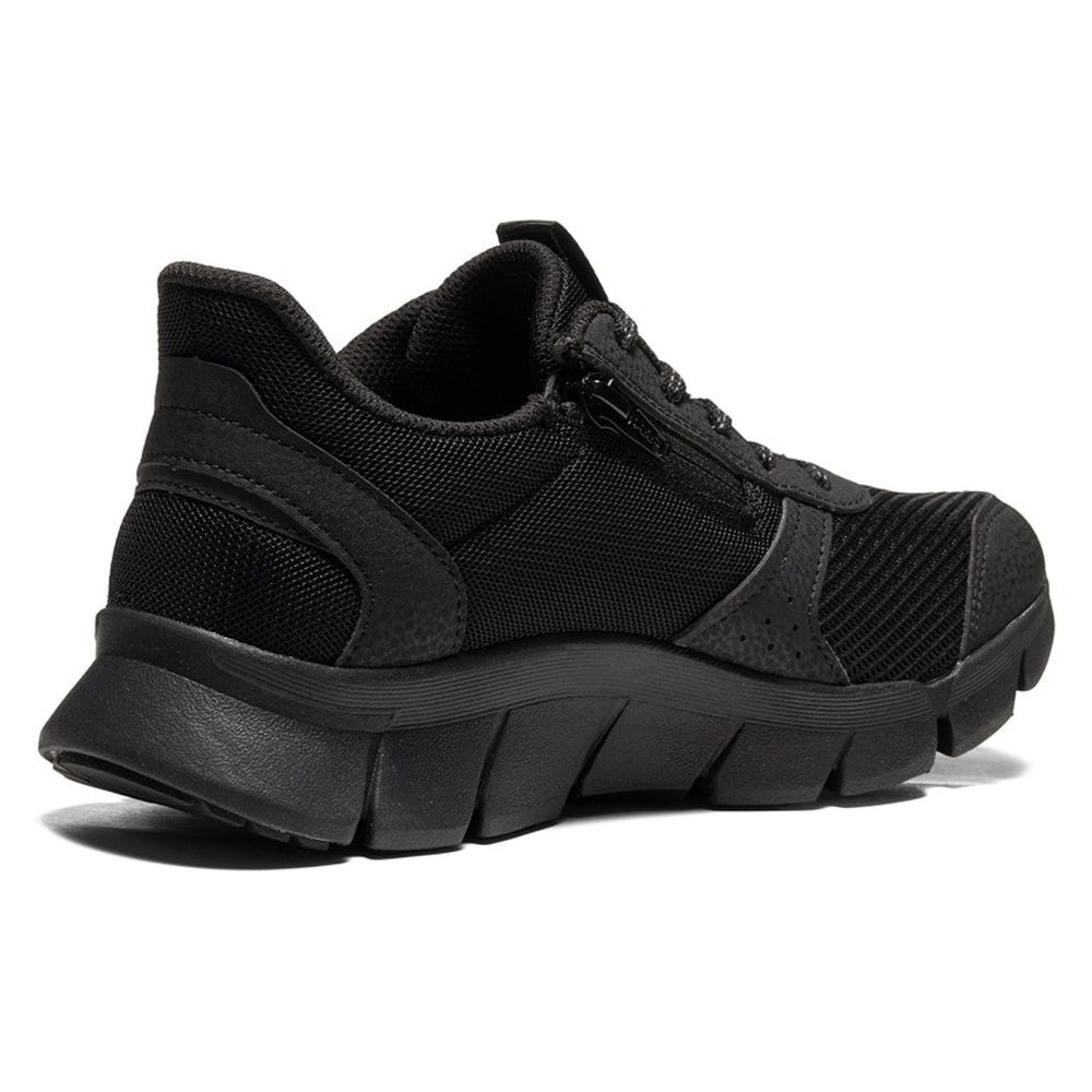 ●道が私のジムになる。 ●歩くだけで足指から脚全体の活性化を追求 (RIZAPコラボレーション&産学共同開発商品) ①HAZUPインナーソール  歩くだけで足指グーパー運動を促進 ②歩きやすいアウターソールデザイン  ローリング形状 ③足指のびのび幅広設計(4E相当/当社基準) ④軽量設計(当社基準) ⑤夜間の視認性を高める反射材をかかと部に使用 ⑥通気性に配慮したメッシュを多用 ⑦ノンマーキングラバー使用 ⑧ファスナーを内甲に使用