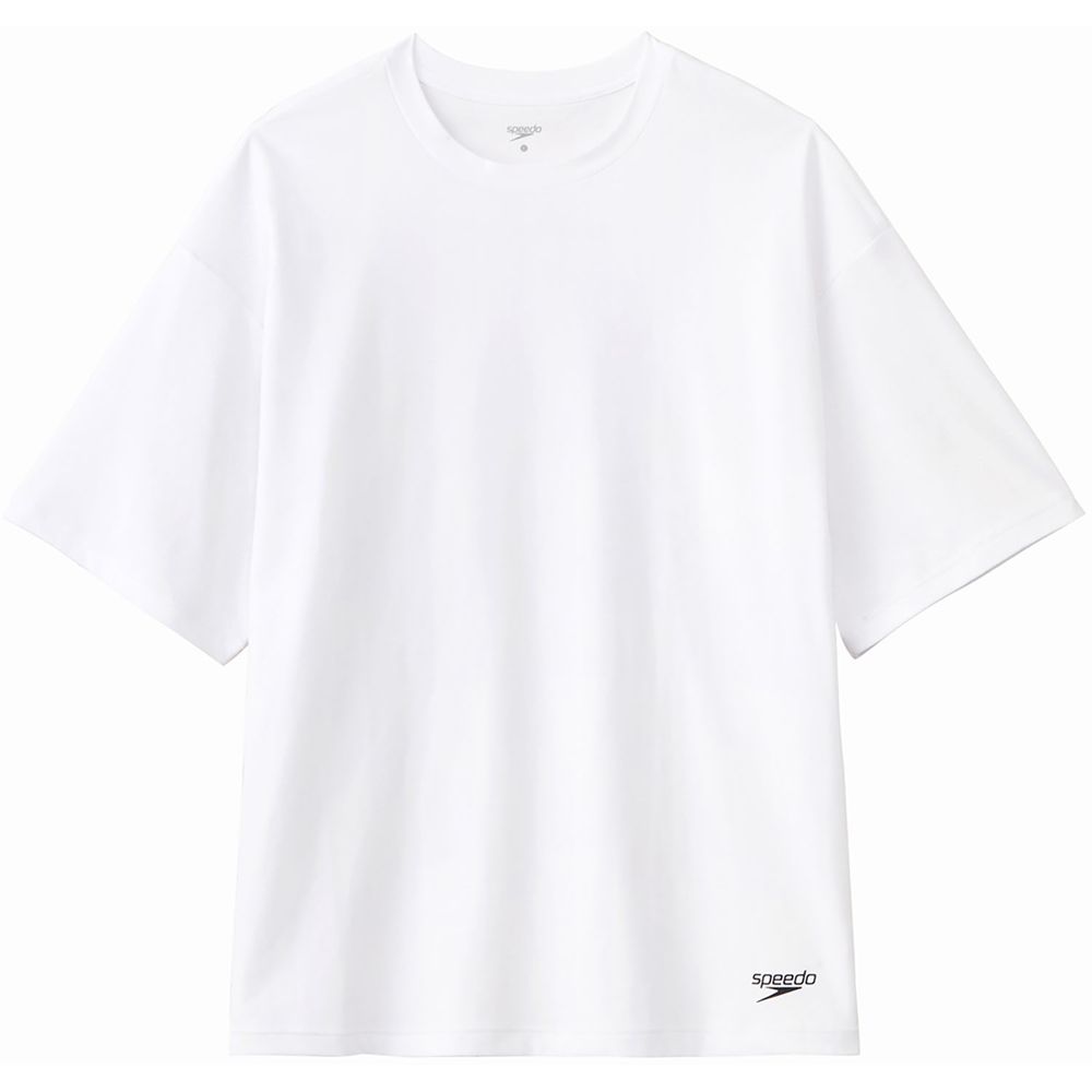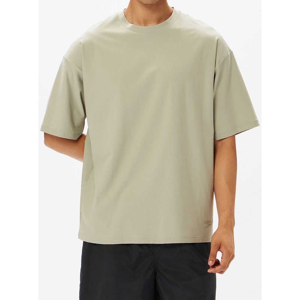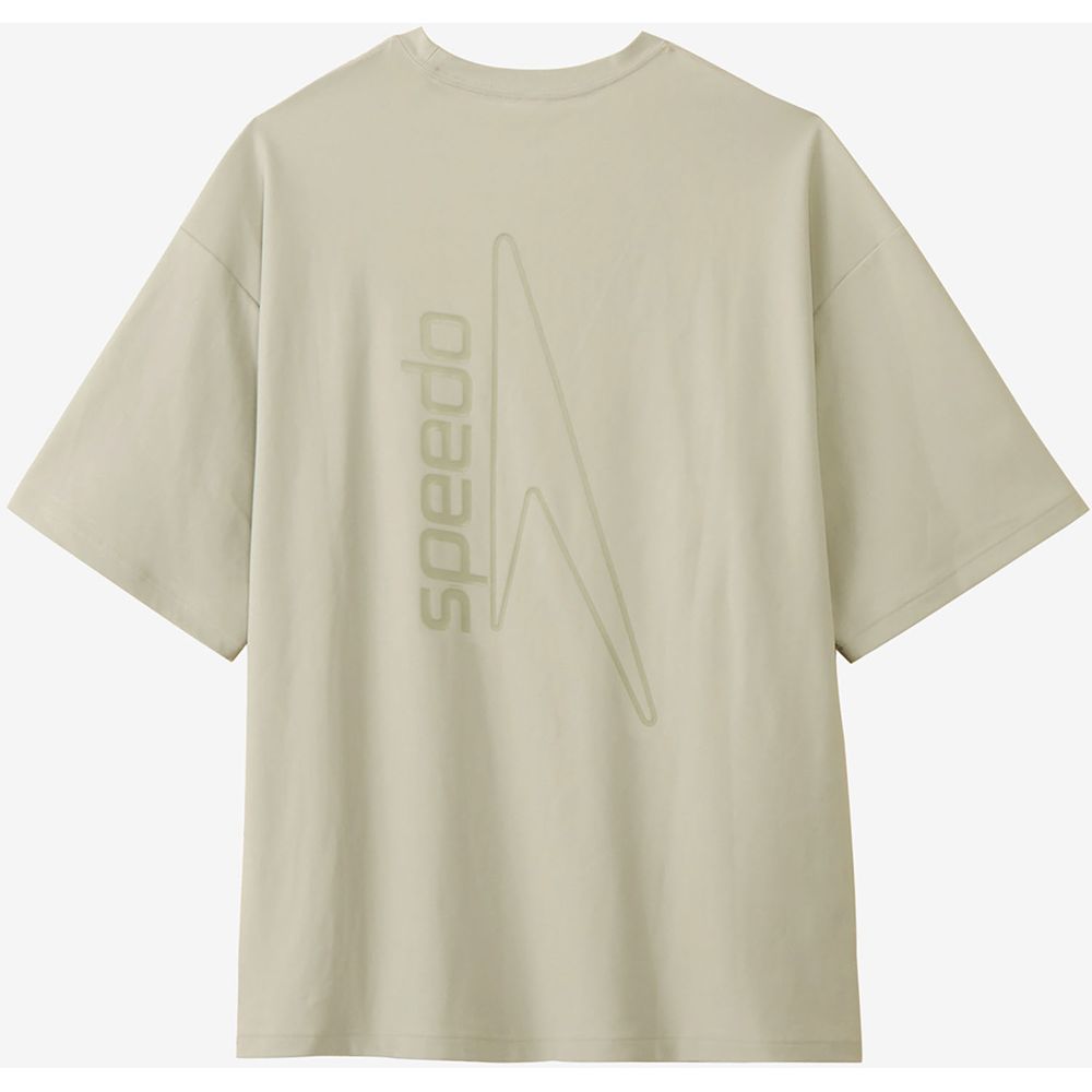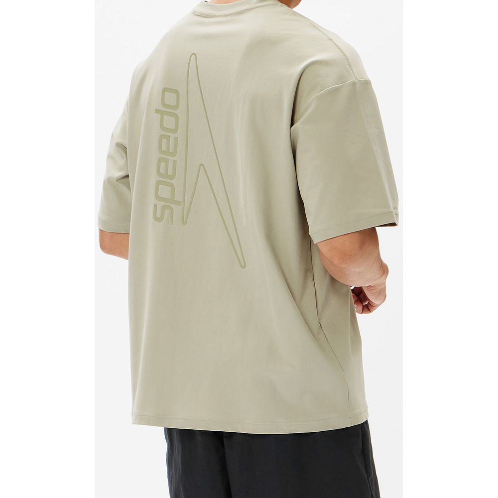 非日常でととのえるこころの健康をテーマに、大人のスイムウエアを提案する「Speedo breath(スピード・ブレス)」。バックプリントが際立つメンズラッシュティーです。優れたストレッチ性と耐久性に加え、柔らかく軽やかな風合いを実現した環境配慮型素材「ENDURANCE LIGHT(エンデュランス・ライト)」を採用。ゆとりのあるルーズフィットシルエット。水陸両用。UVプロテクト(UPF50+、紫外線カット率95%以上)機能付き。Speedoのビッグロゴを90度縦向きにプリント。インパクトのあるデザインながら洗練された印象です。ラッシュガードとしての使用はもちろん、アスレジャーやタウンにも重宝します。