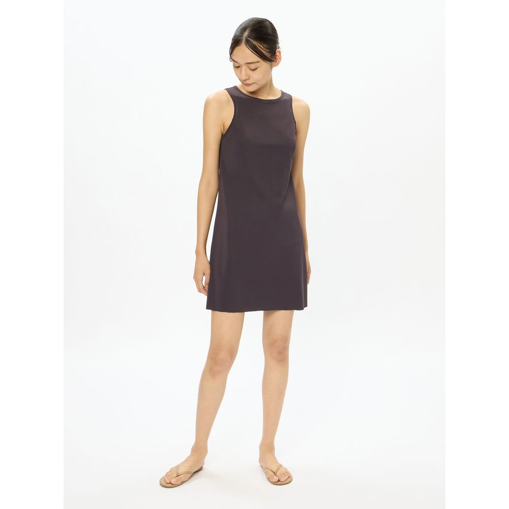 非日常でととのえるこころの健康をテーマに、大人のスイムウエアを提案する「Speedo breath(スピード・ブレス)」。大人可愛いレディースワンピース水着です。GRS認証のすてられるべき廃棄物を100%使用したナイロン糸「RECO NYLON(レコ・ナイロン)」を使用した環境配慮型素材「Sensitive Reco(センシティブ レコ)」を採用。縦にも横にも快適に伸びる4wayストレッチ性。UVケア(UPF15-30、紫外線カット率85%以上)機能付きです。露出を控えた高めのネックラインで、裾に向かってふんわり広がるAラインシルエットがボディラインをさりげなくカバーします。後ろ襟ぐりの開きを調節できるホック付き。差し込みタイプのカップ付きです。カップインナー付きなので、一度の袖通しでスタイルが完結します。インナーにメッシュ素材を用いることで水はけよく、軽量化を図りました。見せてもよいボックス型のボトムインナー付き。安心感のある厚みと柔らかな風合いの環境配慮型素材「ENDURANCE ECO(エンデュランス・エコ)」を採用しました。お持ちのトップスとあわせて、単品でも着用いただけます。インナーの代わりにロングレギンスを合わせたり、上にラッシュガードを羽織ったり、レイヤードしやすいシンプルなデザインです。水着として利用の他、リゾートでのリラックスウエア、タウンユースとしてもご利用いただけます。