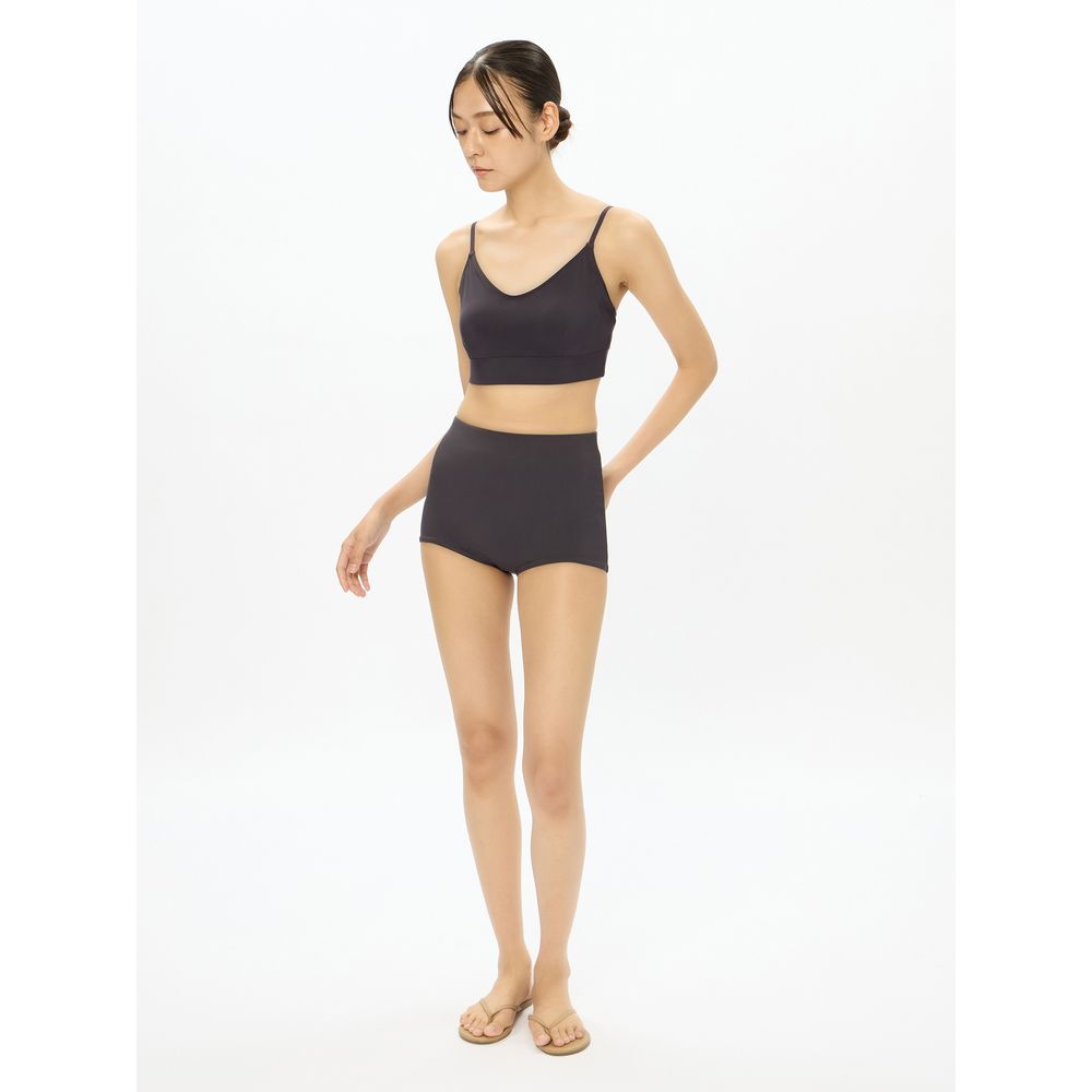 非日常でととのえるこころの健康をテーマに、大人のスイムウエアを提案する「Speedo breath(スピード・ブレス)」。レトロ感とトレンドをミックスしたレディースボトムスです。GRS認証のすてられるべき廃棄物を100%使用したナイロン糸「RECO NYLON(レコ・ナイロン)」を使用した、リサイクル素材「Sensitive Reco(センシティブ レコ)」を採用。おへそがぎりぎり隠れるハイウエスト仕様。脚ぐりが浅めなのでVゾーンが気になりません。ビキニタイプよりも安心して着用できます。トレンドを意識しつつ、下半身をさりげなくカバーします。UVケア(UPF15-30、紫外線カット率85%以上)機能付き。トップスによってさまざまな表情が楽しめる、シンプルなデザインです。