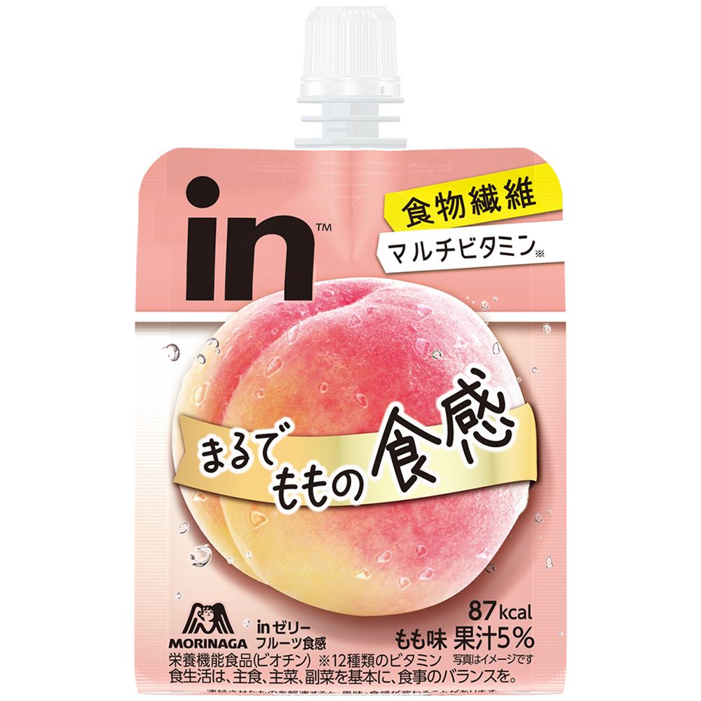 砂糖(国内製造)、もも果汁、難消化性デキストリン、果糖ぶどう糖液糖、発酵乳(殺菌)、寒天/ゲル化剤(増粘多糖類)、香料、乳酸Ca、V.C、酸味料、甘味料(アセスルファムK、スクラロース)、ナイアシン、パントテン酸Ca、乳化剤、V.E、V.B1、V.B2、V.A、V.B6、葉酸、ビオチン、V.D、V.B12