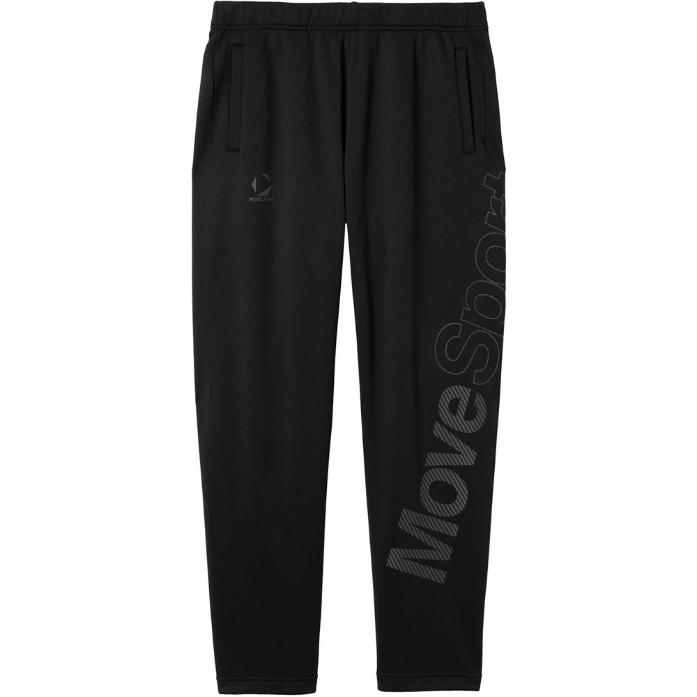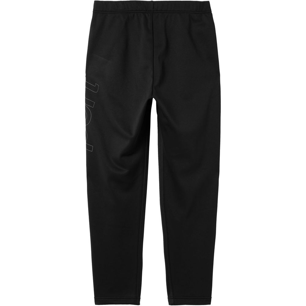 左足背面に大胆なビックロゴをあしらったロングパンツ。ストレッチ性に優れた裏起毛素材を採用。