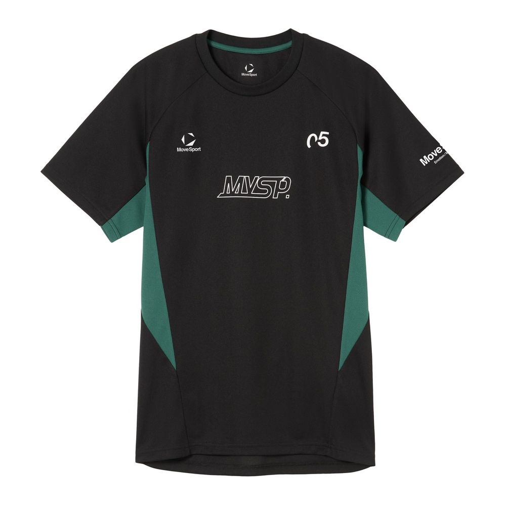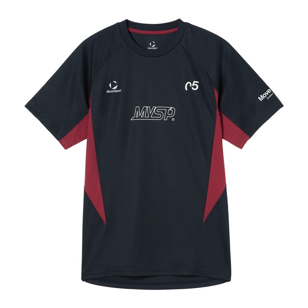 胸部分のプリント、脇の切替がデザインポイントの半袖プラクティスシャツです。