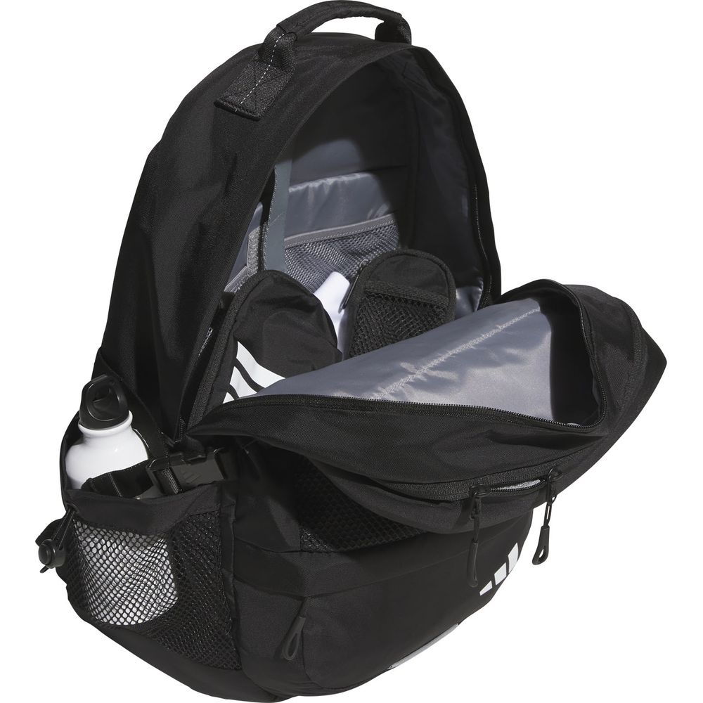 仕様:光沢のあるナイロンファブリック、モノを仕分けて収納できる2つのコンパートメント、前面のメッシュジッパーポケット、両サイドにボトルポケットと背面にシークレットポケット、CLIMACOOLバックパネル、取り外し可能なペンケースとイヤフォンケース