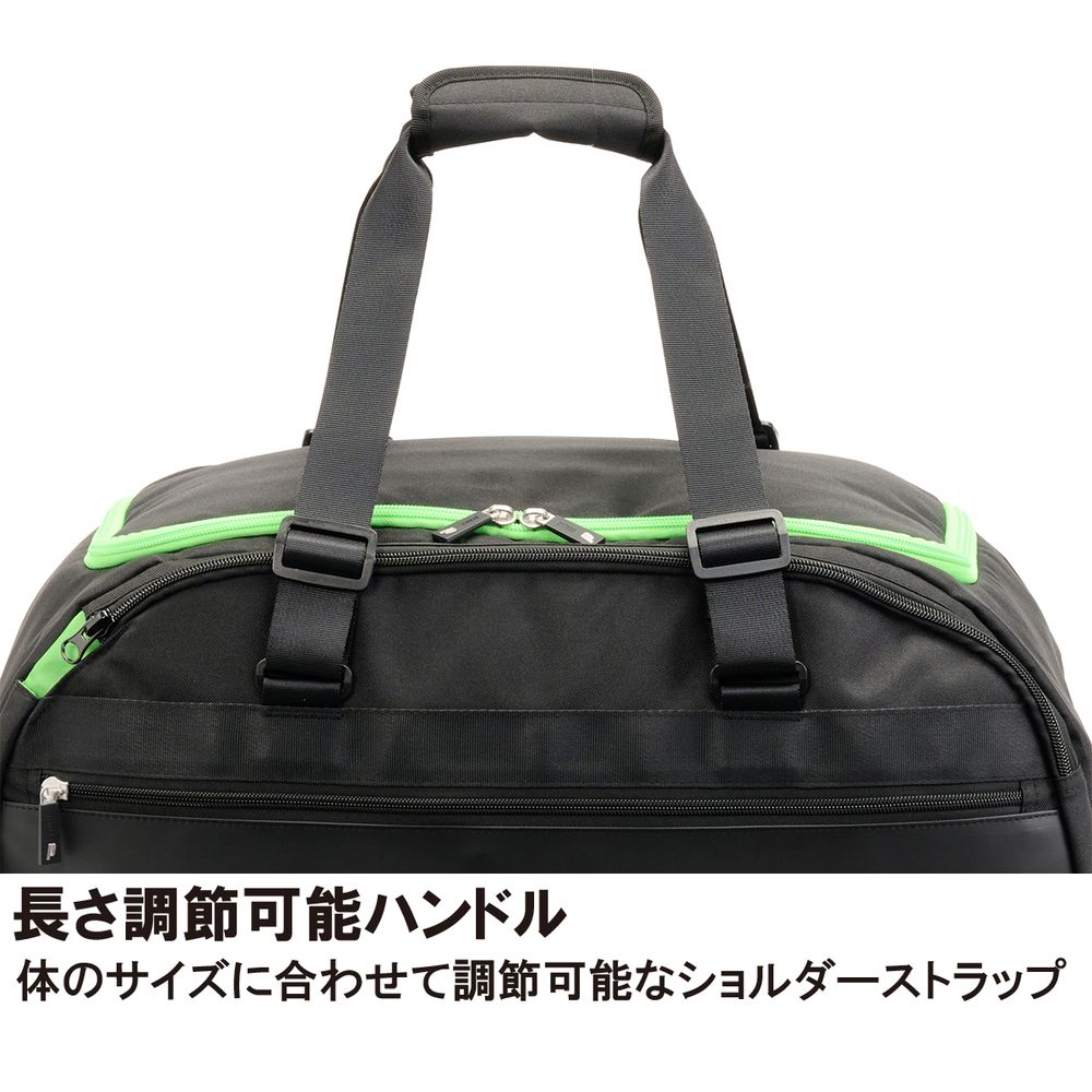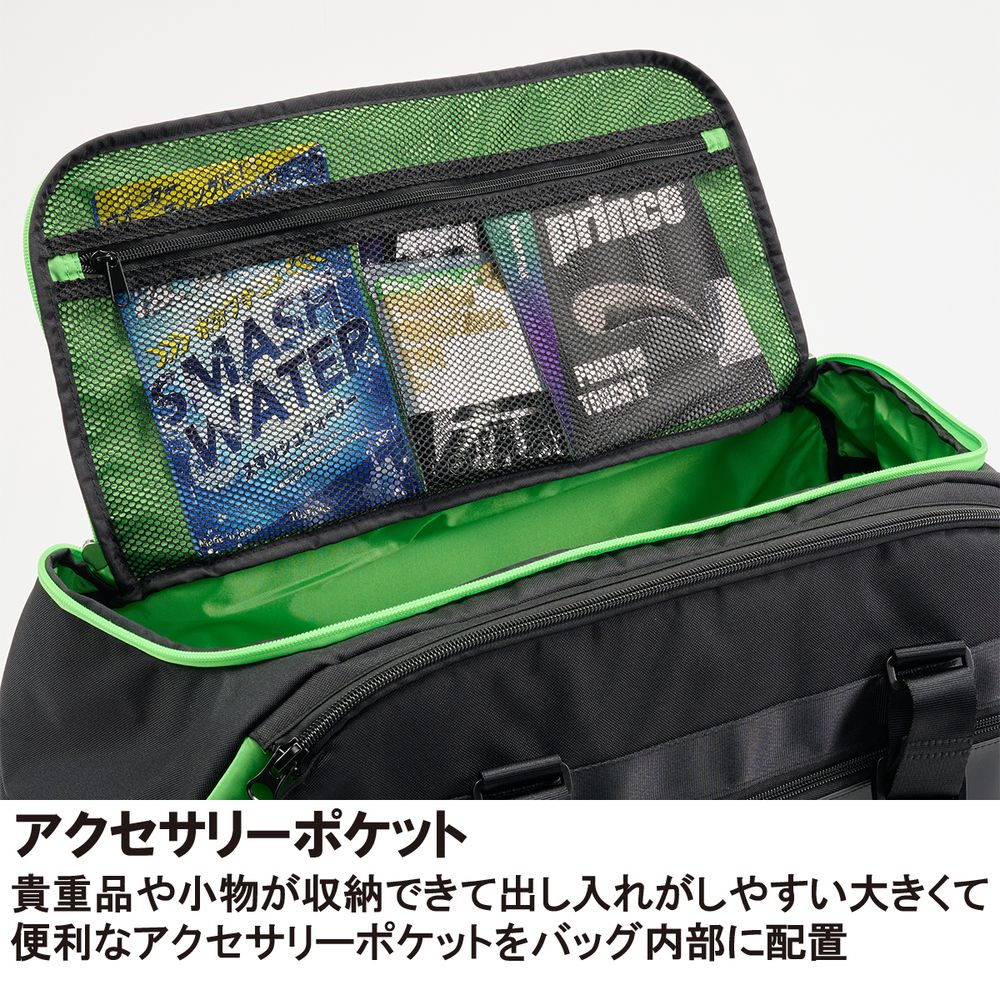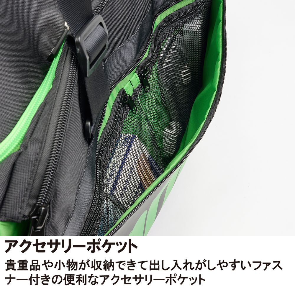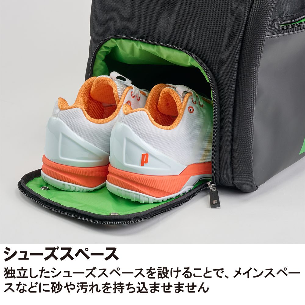 機能:シューズスペース、アクセサリーポケット、フリースポケット、長さ調節可能ハンドル、ロックファスナー、ラケットスペース、ドリンクホルダーポケット
