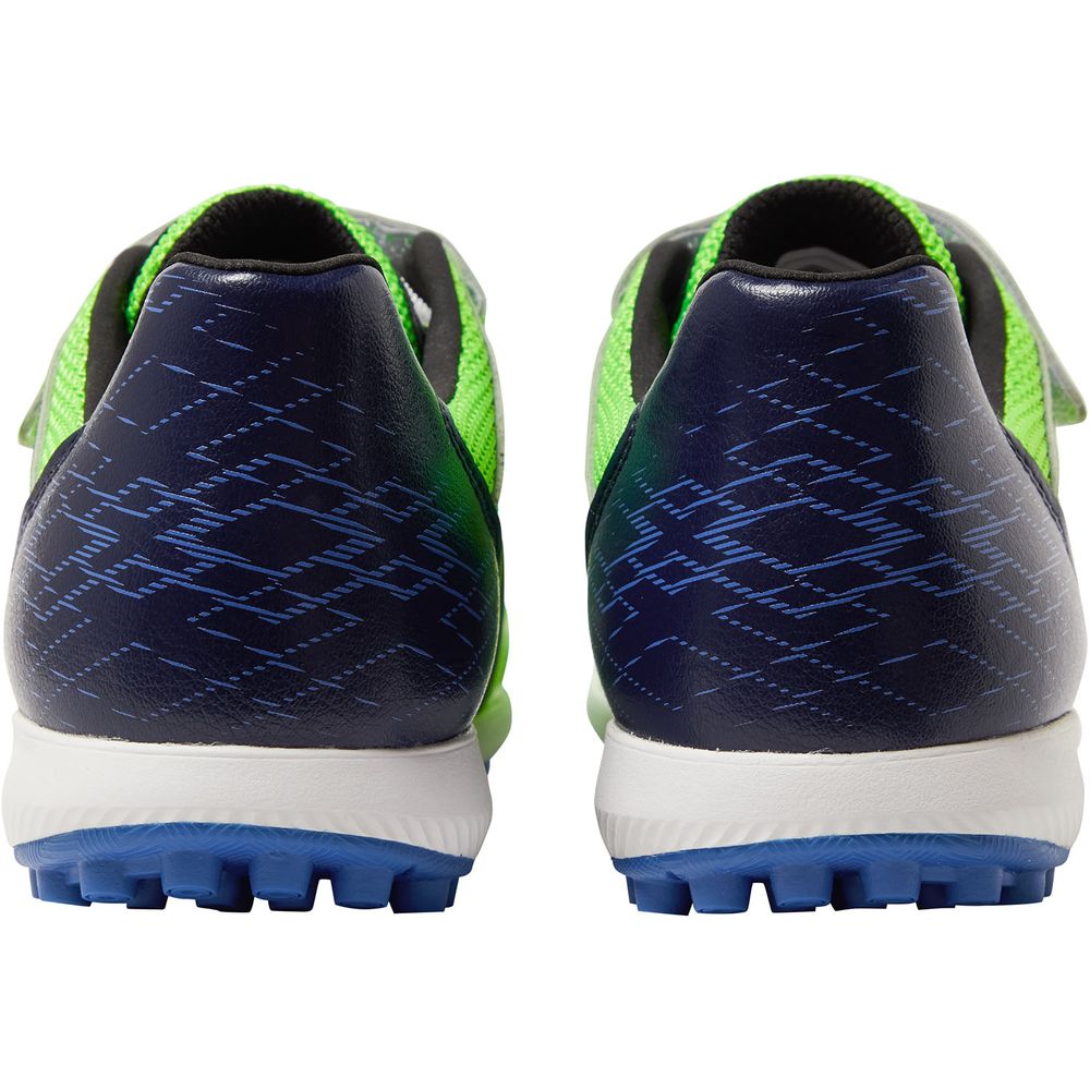 『ACCERATOR』シリーズのスタータープレーヤー向けシューズ。日本国内企画のワイドラスト。アンブロが持つフィッテイングサポートファンクションのAフレームをグラッフィクデザインで表現。インステップキック時のインパクトを意識しやすいプリント加工を採用。104本のラバースタッドでグリップし、屈曲性を考慮したアウトソールを採用。Aフレームプリントデザインを採用。耐久性に考慮した着脱が容易な1本ベルト仕様。アッパー材全体に耐久性のある合成皮革を採用。クッション性と反発性を考慮したインジェクションEVAをミッドソールに採用。取り外し可能なEVAカップインソール。