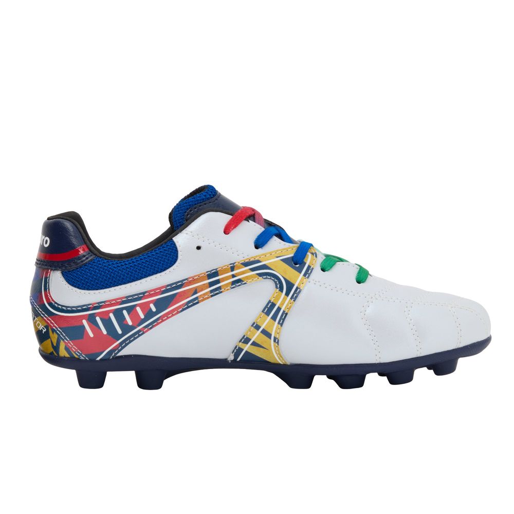 『ACCERATOR』シリーズのスタータープレーヤー向けシューズ。日本国内企画のラスト。アンブロが持つフィッティングサポートファンクションのAフレームを補強パーツとして採用することで、中足部から後足部にかけてのホールド感と安定性をサポート。ジュニア世代の足への負担を考えたクッション性のあるラバー製スパイクソール。アッパー材全体に耐久性のある合成皮革を採用。前足部のステッチは足あたりに考慮して配置。地面からの突き上げを感じやすい踵部分に衝撃緩衝材『U/メモリーF』を搭載。シューホール位置を見直し、フィット感に考慮した設計。取り外し可能なEVAインソール。
