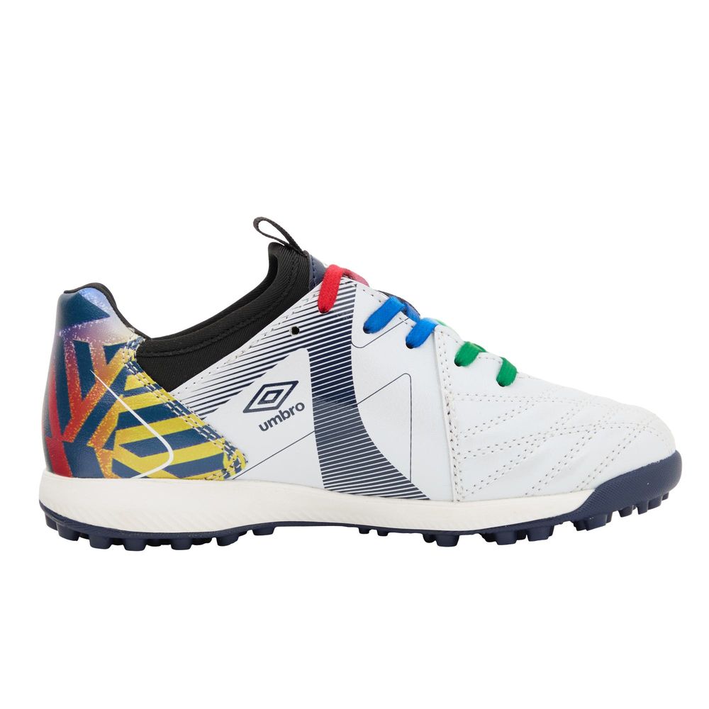 『ACCERATOR』シリーズのスターター/ステップアッププレーヤー向けシューズ。日本国内企画のラスト。アンブロが持つフィッティングサポートファンクションのAフレームをグラフィックデザインで表現。インステップキック時のインパクトを意識しやすいプリント加工を採用。104本のラバースタッドでグリップし、屈曲性を考慮したアウトソールを採用。Aフレームパーツを採用。アッパー材全体に耐久性のある合成皮革を採用。クッション性と反発性を考慮したインジェクションEVAをミッドソールに採用。取り外し可能なEVAカップインソール。