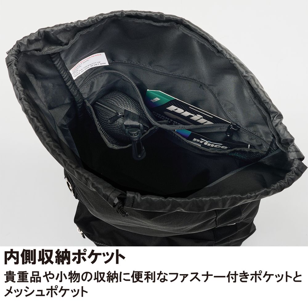 洗練されたオールブラックで統一されたスタイリッシュなデザインが特徴。シーズンを問わない汎用性の高いラケットバッグ