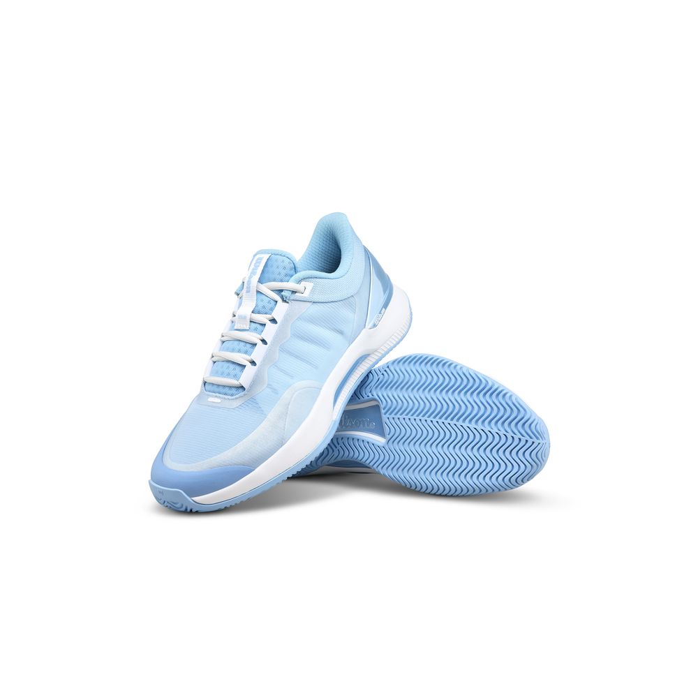 INTRIGUEは女性プレーヤーのために作られたテニスシューズです。ゲームを通して軽やかに走り続けられることをコンセプトに、女性特有の足型、求められる機能、プレースタイルを考えて設計されています。高いクッション性と反発力を備えたINTRIGUE TOURは、足のエネルギーロスを減らし、フットワークを飛躍的に向上させてくれます。