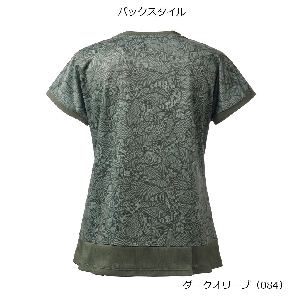 リーフ柄をプリントしたゲームシャツ 裾のプリーツがポイント
