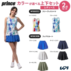 プリンス Prince テニスウェア レディース 【上下セット】スリーブレスシャツ×フレアスカート WS6052-WS6308 2026SS「コインケースプレゼント」