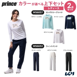 プリンス Prince テニスウェア レディース 【上下セット】ロングスリーブシャツ×ウィンドパンツ WS6057-WS6652 2026SS「コインケースプレゼント」