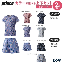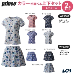 プリンス Prince テニスウェア レディース 【上下セット】ゲームシャツ×ストレッチスキュロット 柄ありカラー×無地カラー WF5089-WF5340-1 2025FW
