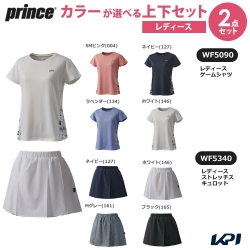 プリンス Prince テニスウェア レディース 【上下セット】ゲームシャツ×ストレッチスキュロット 柄ありカラー×無地カラー WF5090-WF5340-1 2025FW